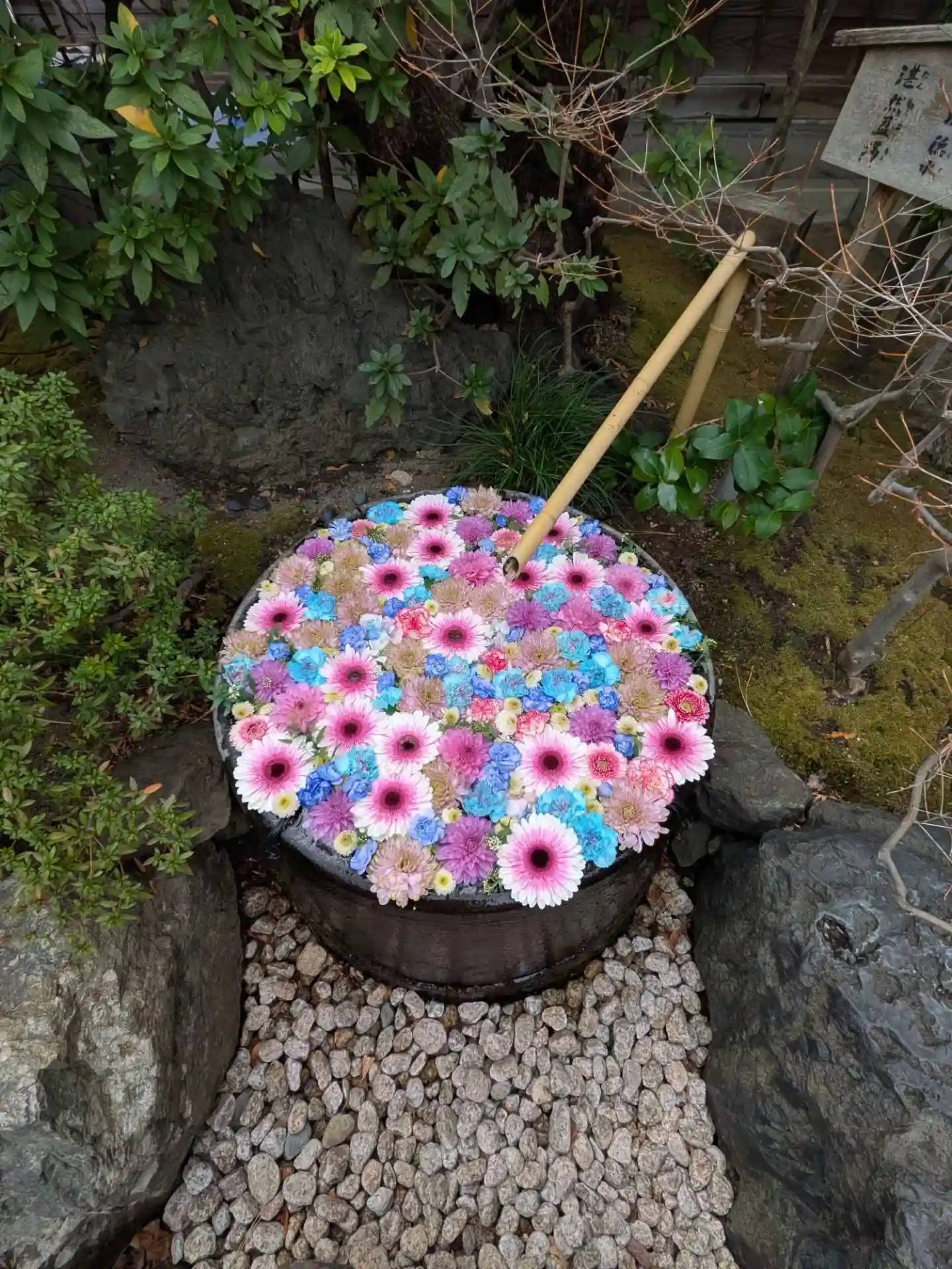 素敵な大きな手水鉢が素敵な花手水になっていました。