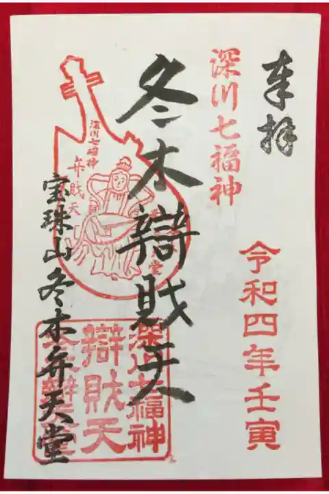 深川七福神めぐり、皆さん色紙を持って、七福神めぐりを楽しんでいました。自分は1月7日までの期間のみでいただける弁財天の御朱印をいただきました。ここは普段から社務所は人がいませんので、この期間のみしかいただけないようです。