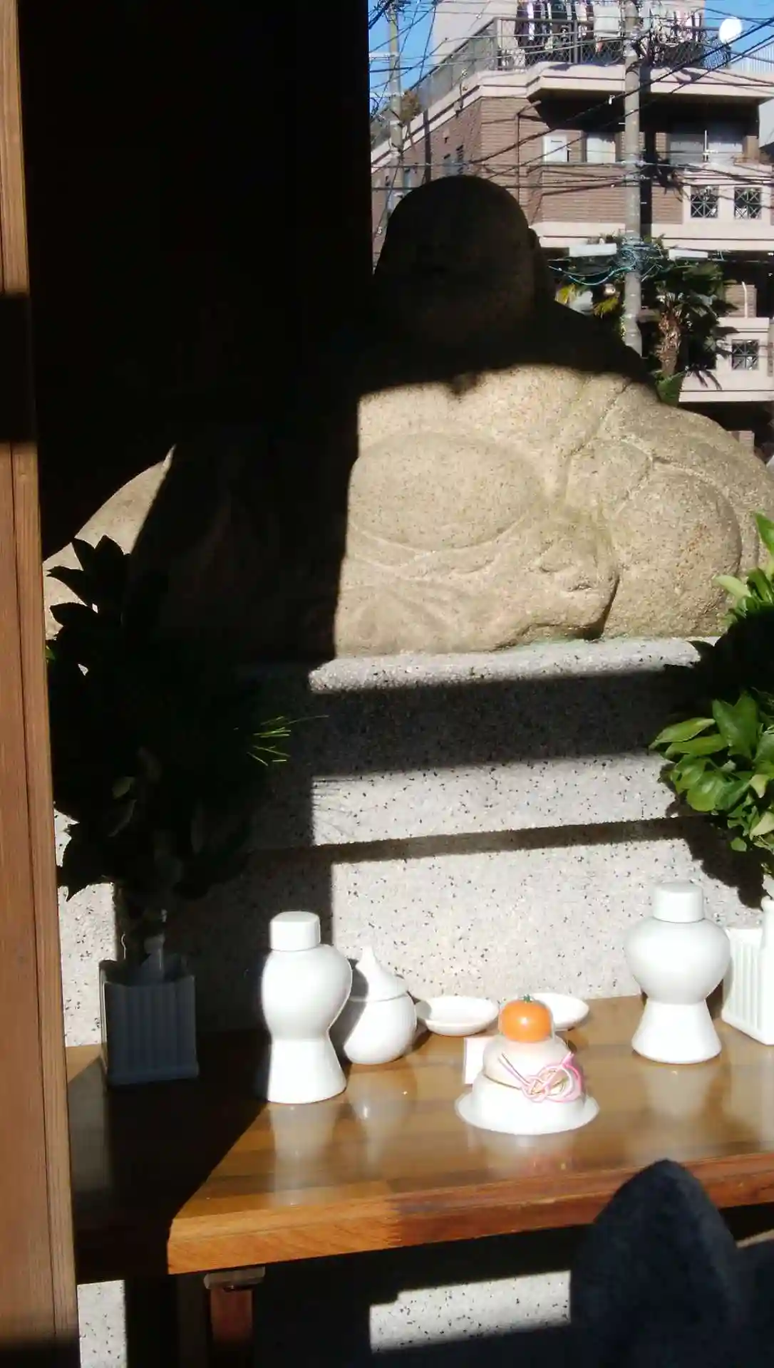 ちょこんと布袋様の像