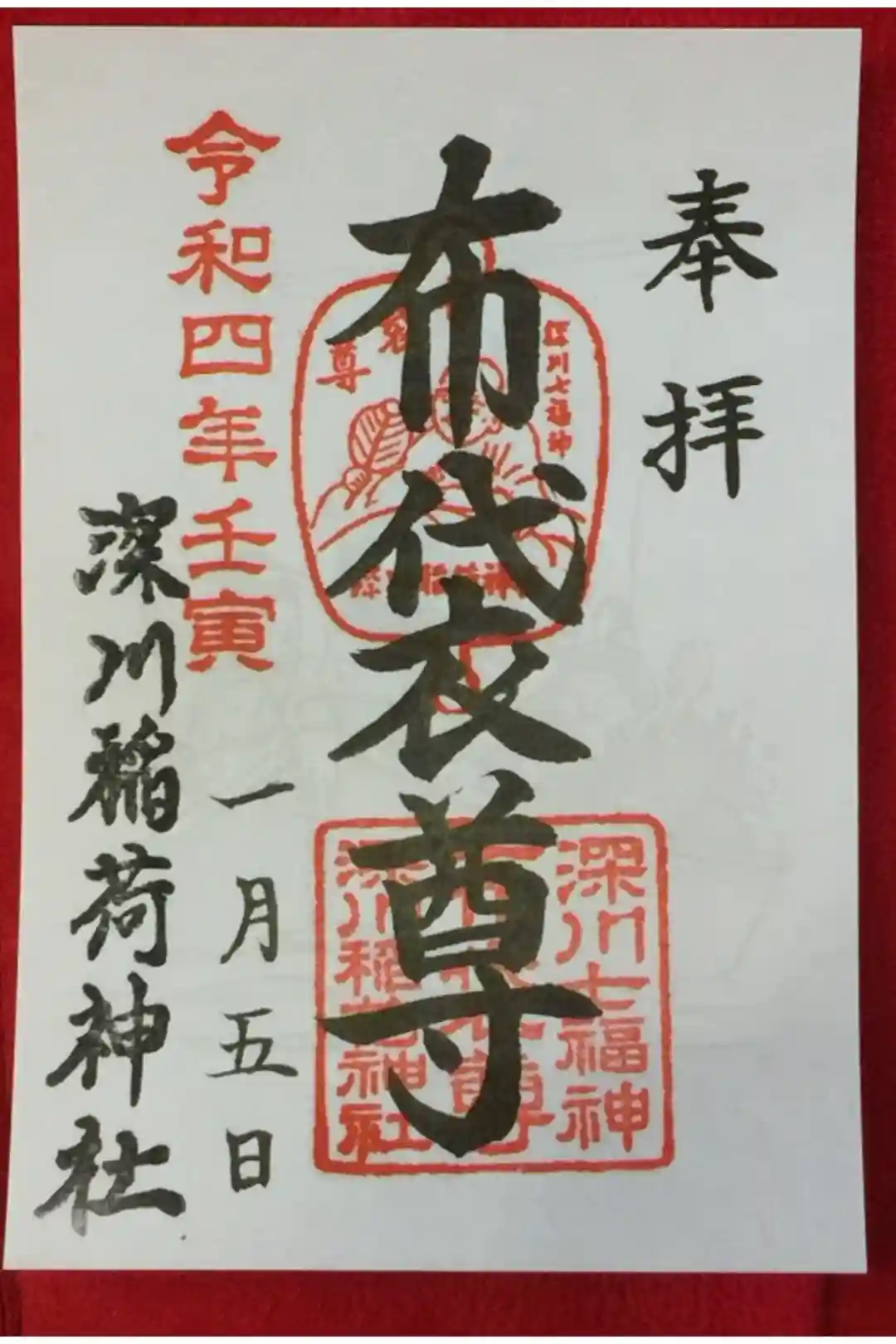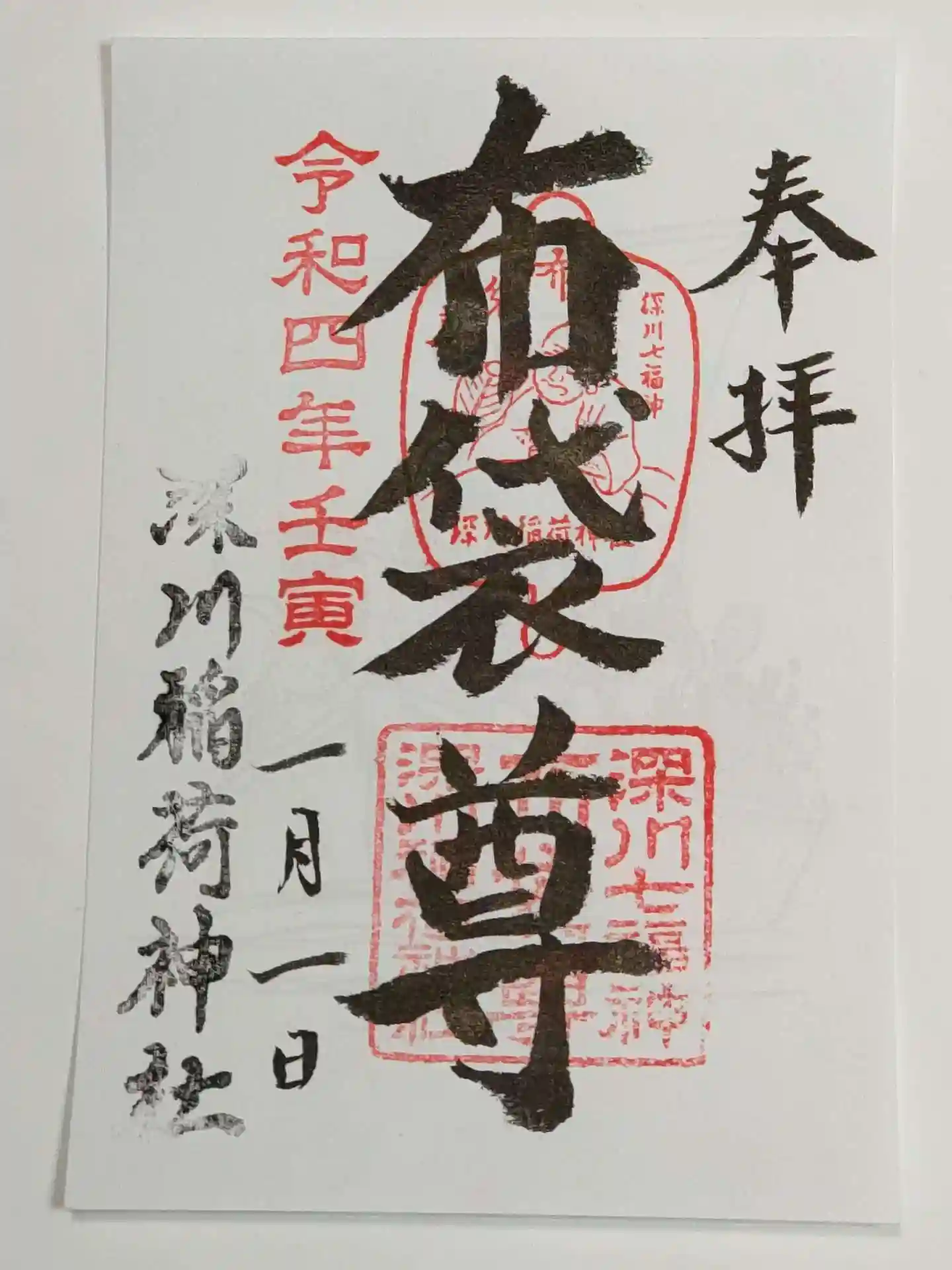 深川七福神めぐり、布袋様の御朱印をいただきました。今年の七福神の御朱印は書き置きのみの対応です。