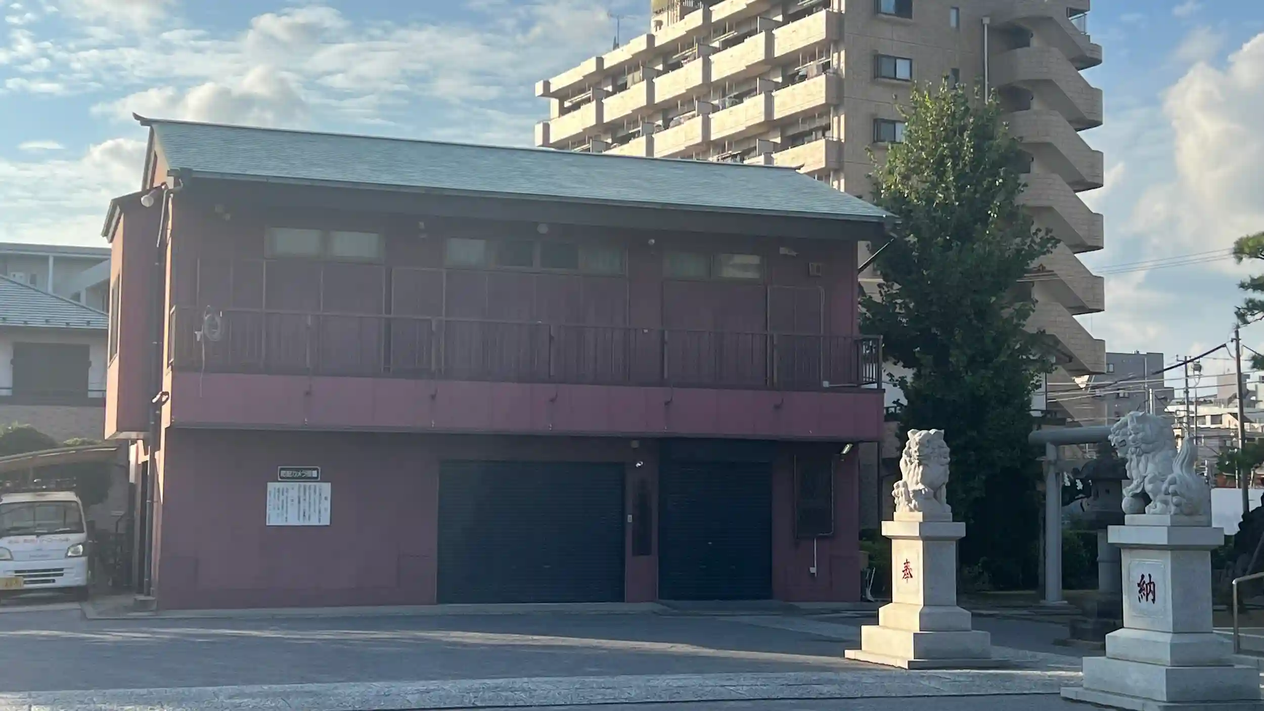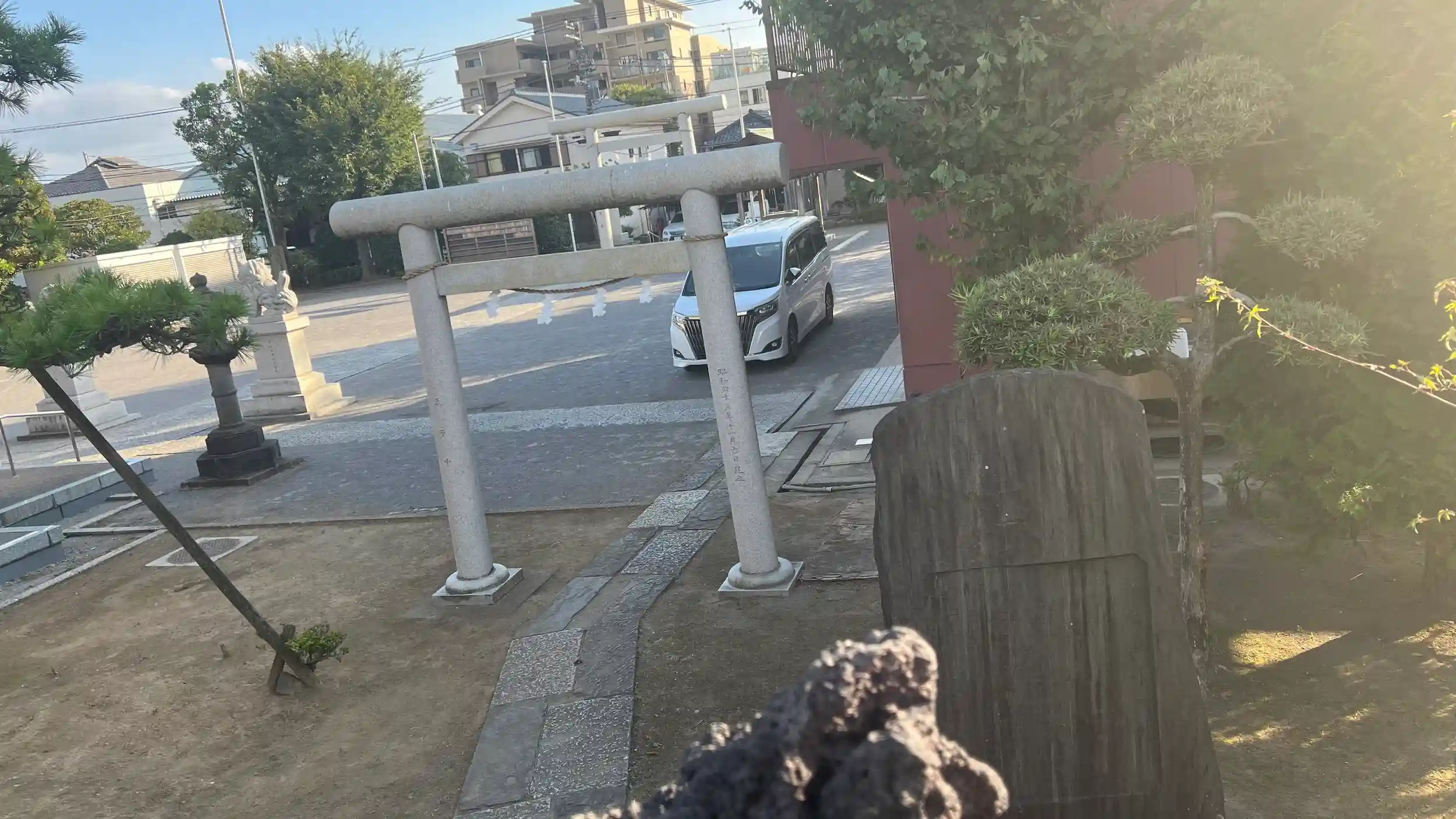境内に建つ「神社落慶記念碑」によれば、この神社の創建は慶安2年(1649年)にさかのぼり、天照大神を勧請して社殿を建立したことに始まると伝えられています。御祭神はそのことから天照大神と考えられ、地域の氏子や住民にとって長らく崇敬の対象となってきました。江戸時代から続く歴史をもつことを思うと、現在の町並みの中でひときわ存在感を放つのも頷けます。