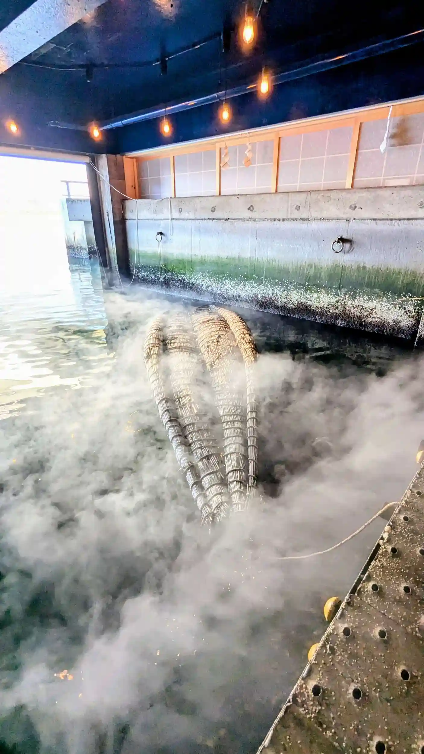 引水部天井の照明は、12星座を表しています。