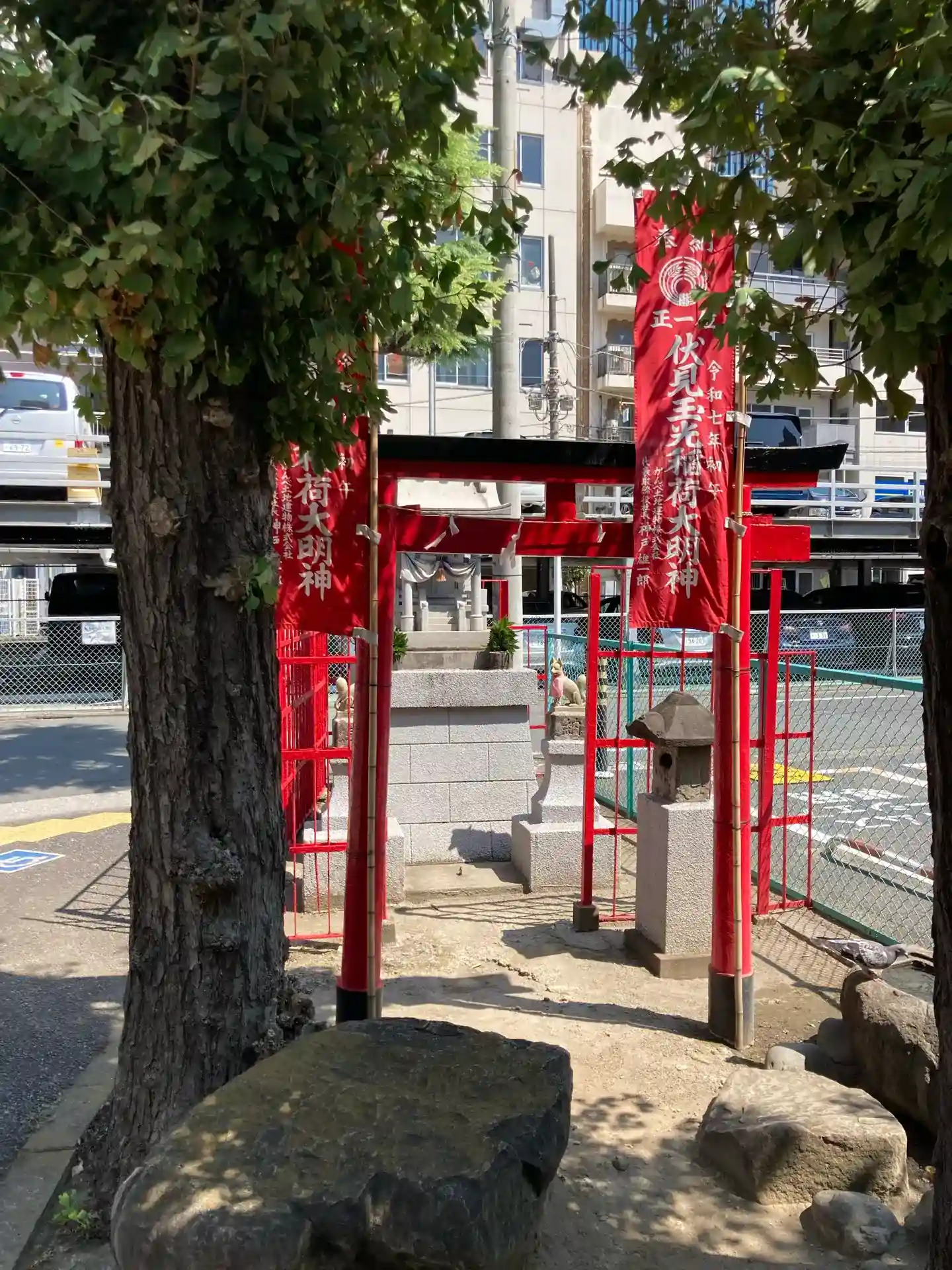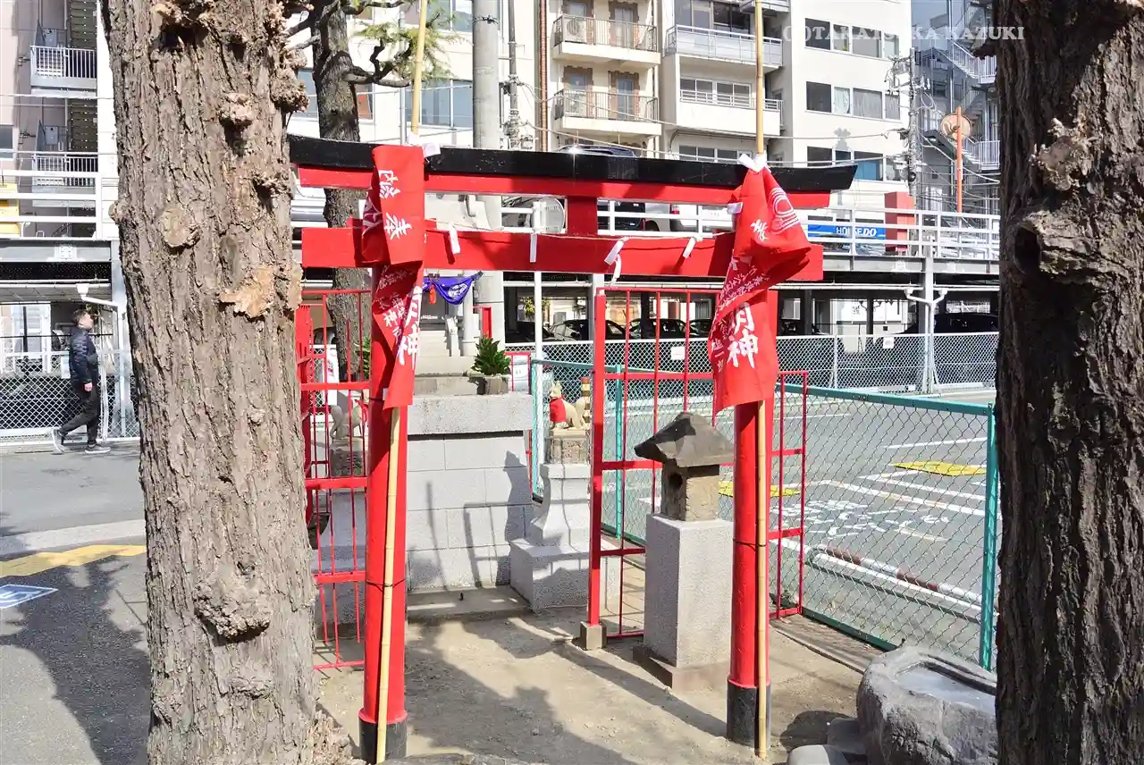 東京都品川区大井にある大井蔵王権現神社に近接した駐車場の一角に鎮座する小さな稲荷神社である。