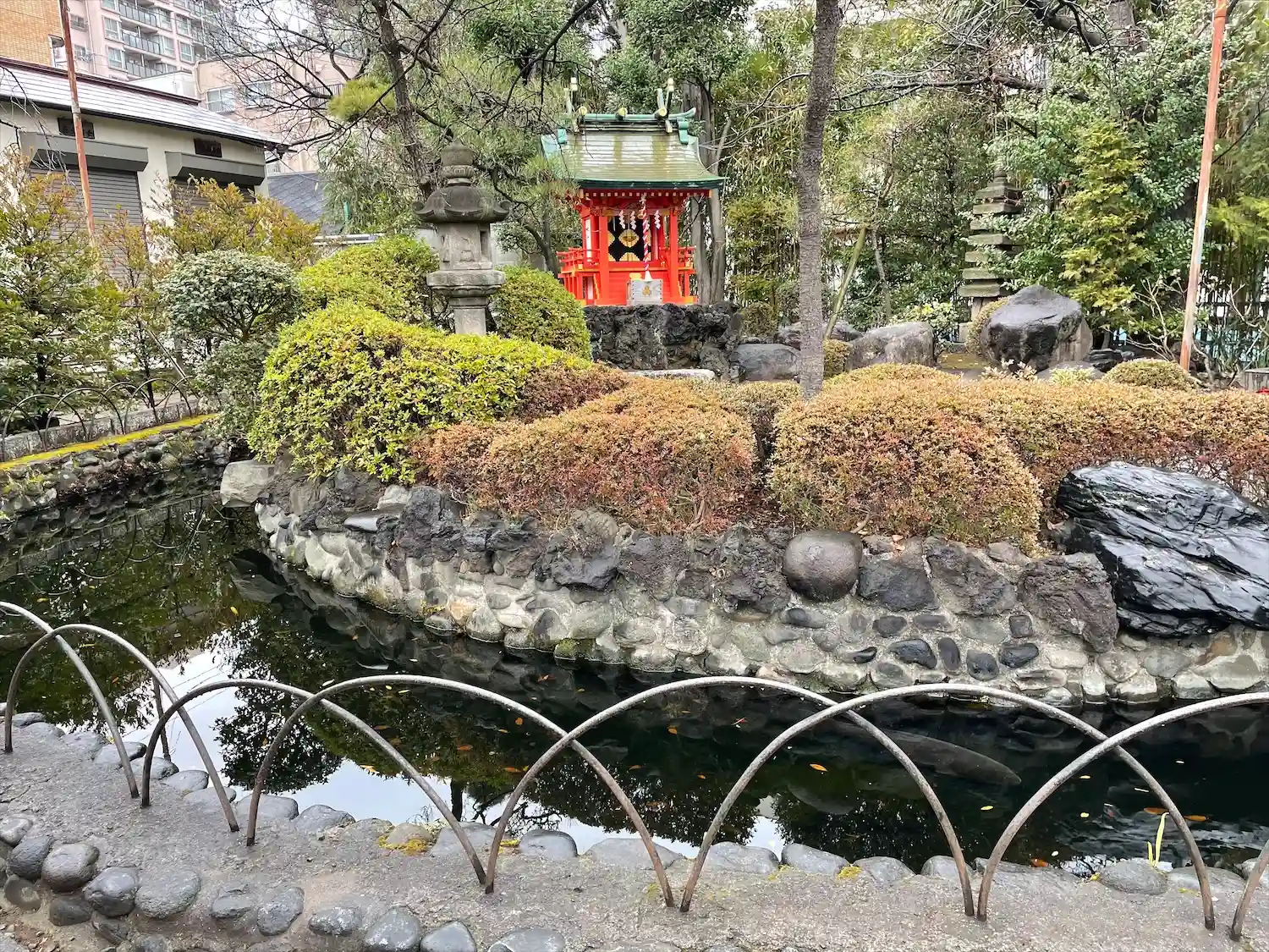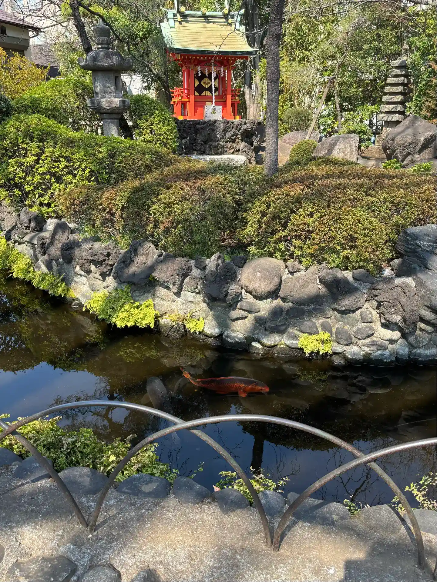 池には可愛らしい橋が架かり、とても大きく立派な鯉が泳いでいたのが…