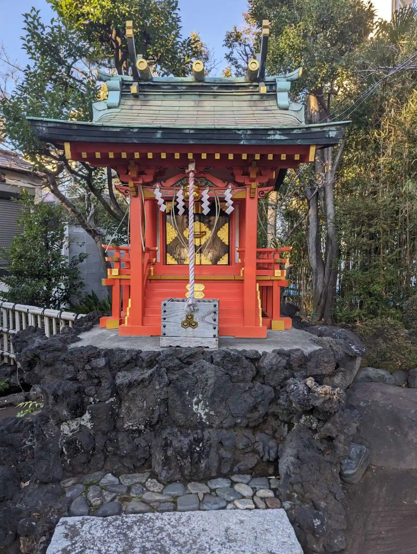 天祖・諏訪神社の摂社で、弁天様(弁財天)を祀っていて、周りの弁天池では立派な鯉が悠々と泳いでいる。…