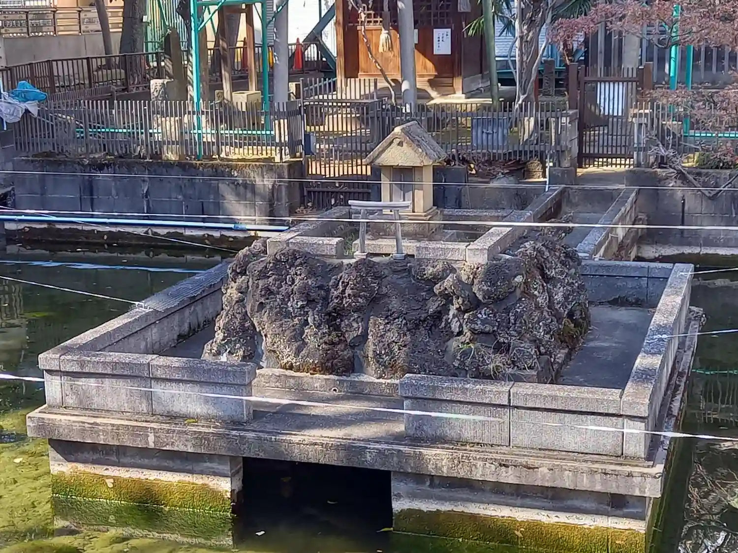 境内には池が有り、鯉と亀が居ました。出世稲荷、漁呉玉神社、厳島神社、鮫祠の4社も建立されてました。…