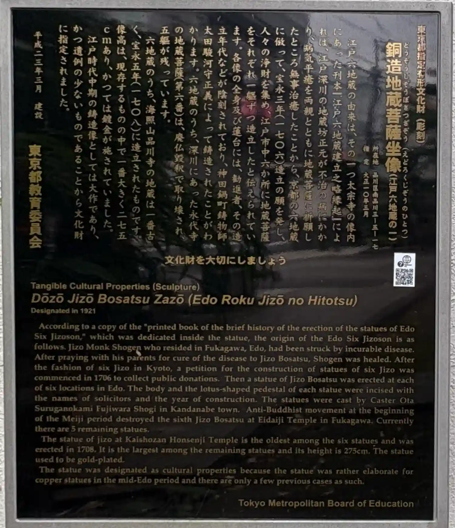 銅造地蔵菩薩坐像の碑