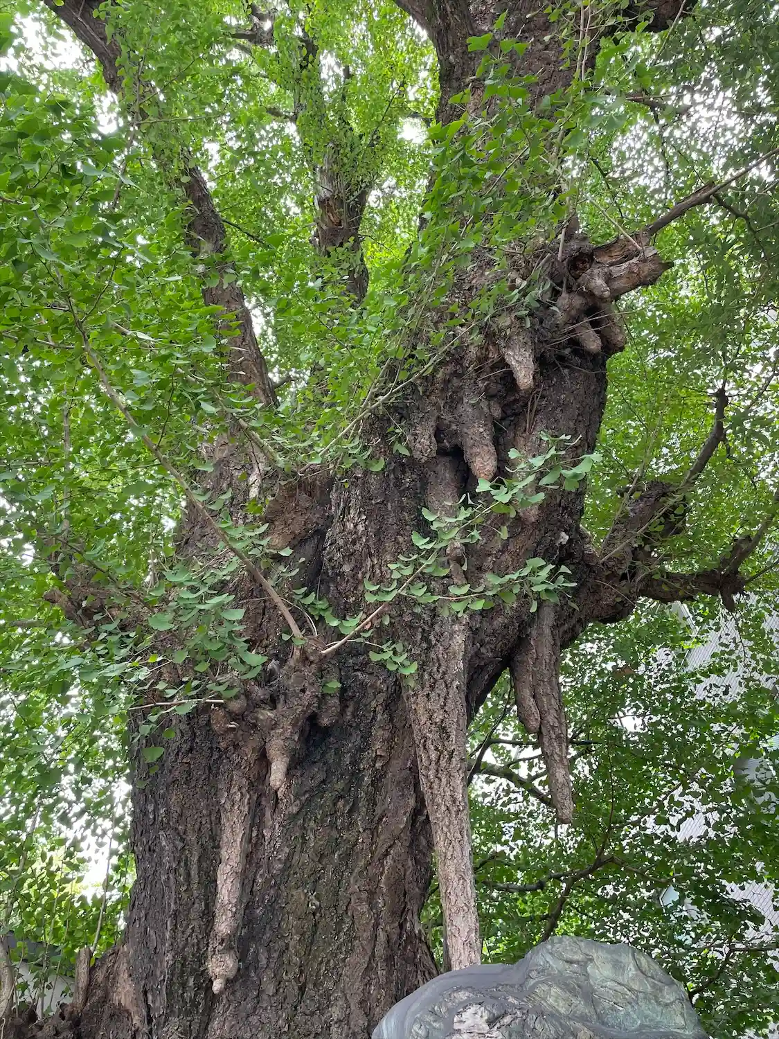 銀杏の木によく見る乳根が大きいですね。