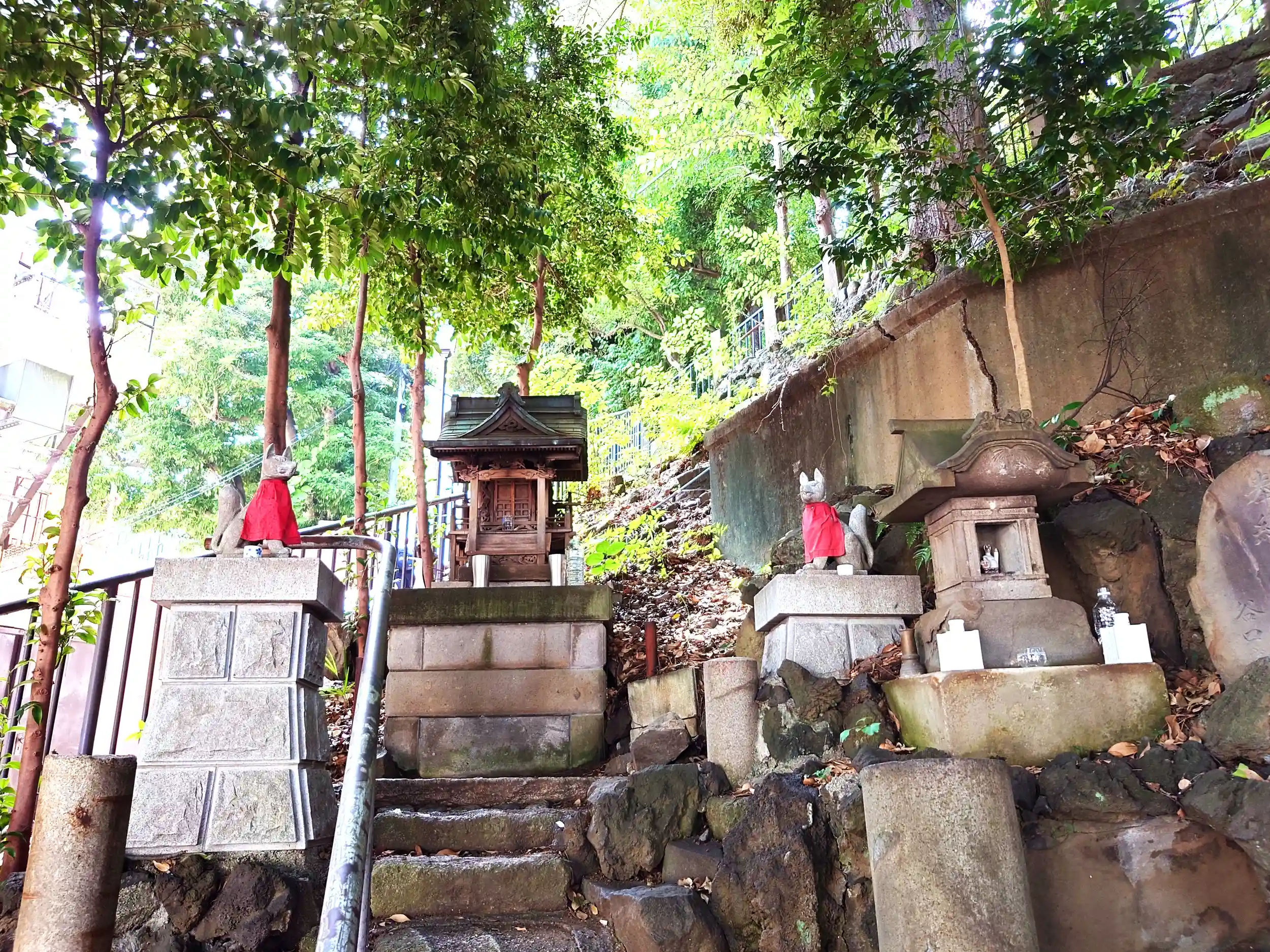 斜度がキツイ石段参道