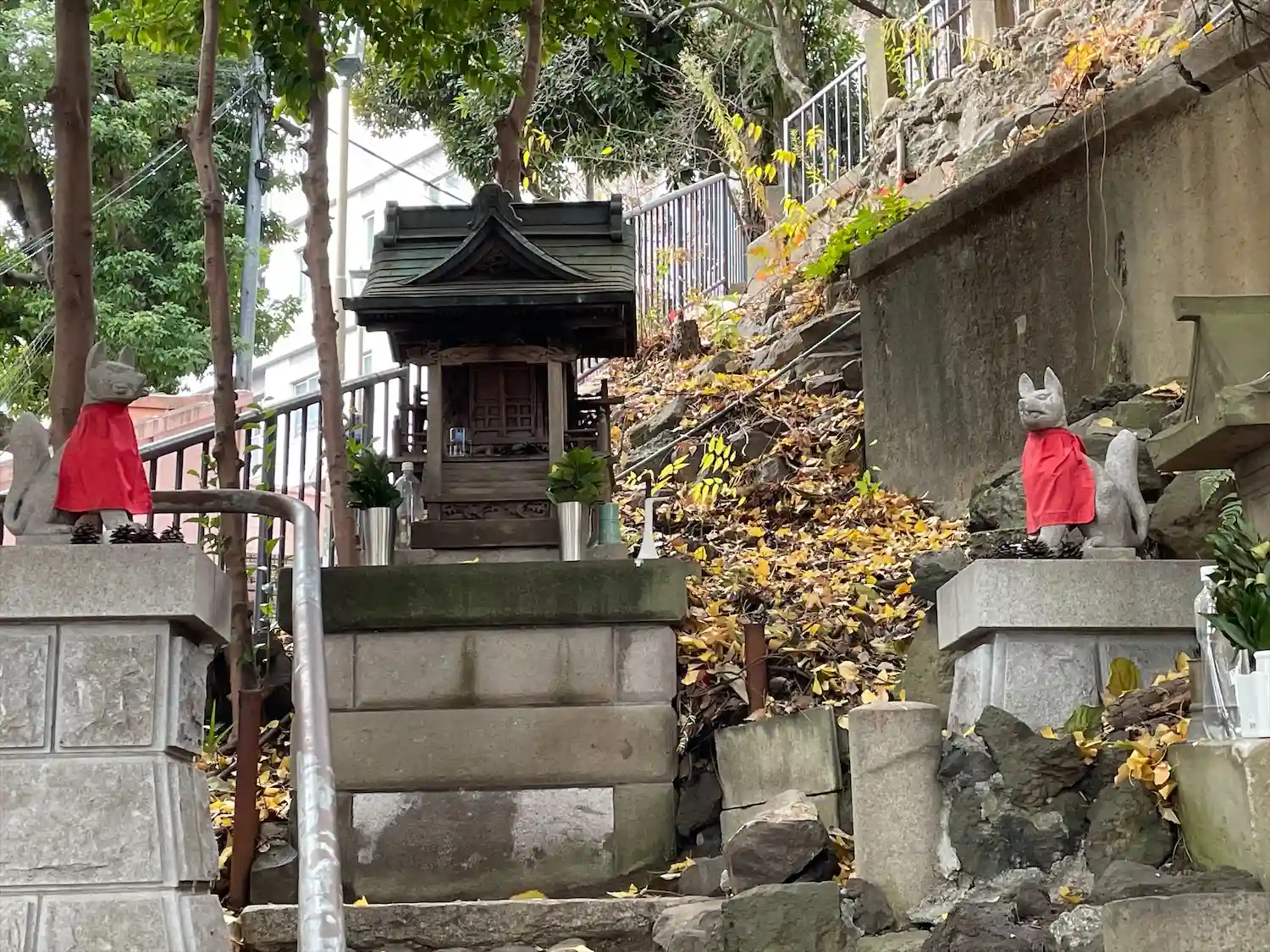 となりに幼稚園 注意喚起の掲示が多く圧がある 稲荷神社がある