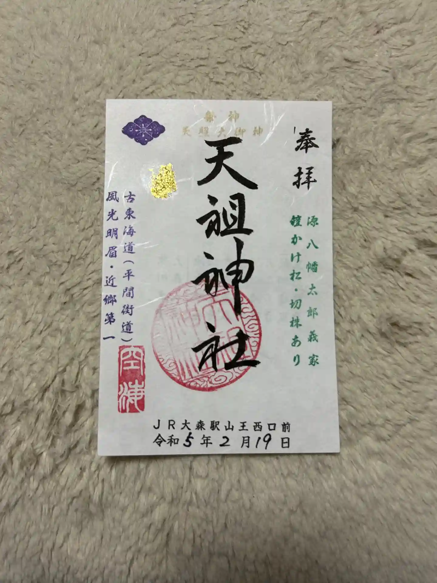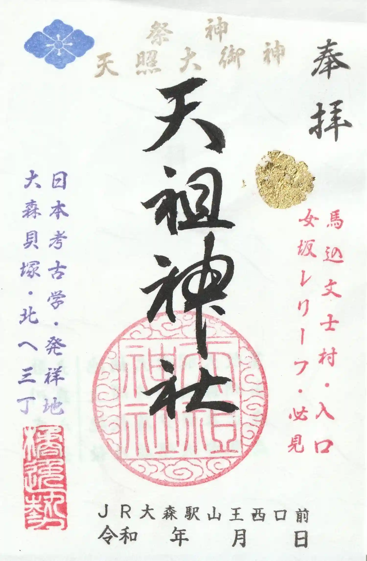 大井蔵王権現神社を後にJR大井町駅から大森駅まで電車に乗車して駅前の八景天祖神社を参拝して御朱印…