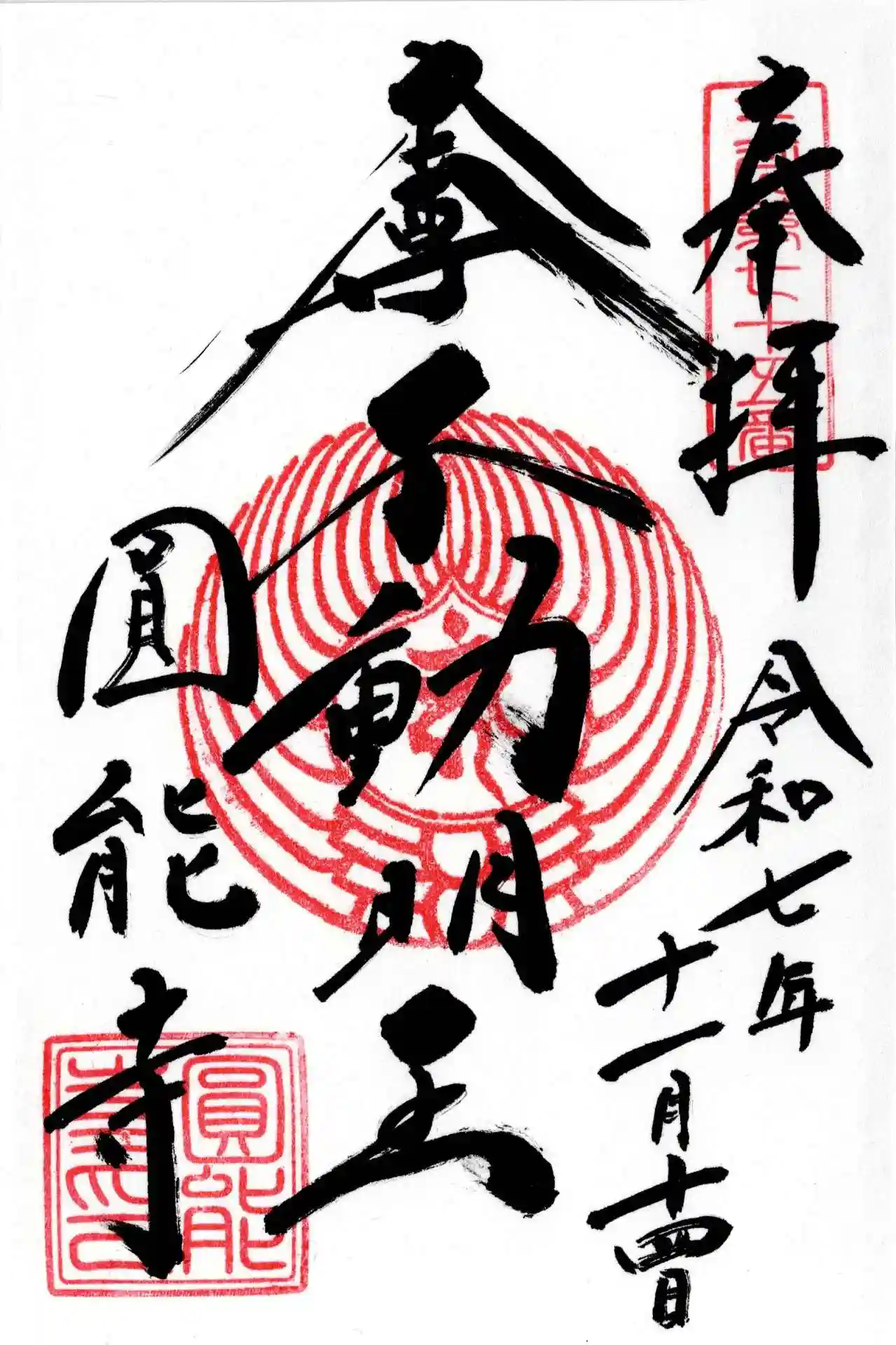 本堂にはお不動さまが祀られ、玉川八十八ヶ所霊場の札所らしい落ち着いた雰囲気が漂っています。園児の明るい声が風に混じりながらも、手を合わせるとしっかりと静寂が寄り添ってくれる、不思議と居心地の良い空間でした。