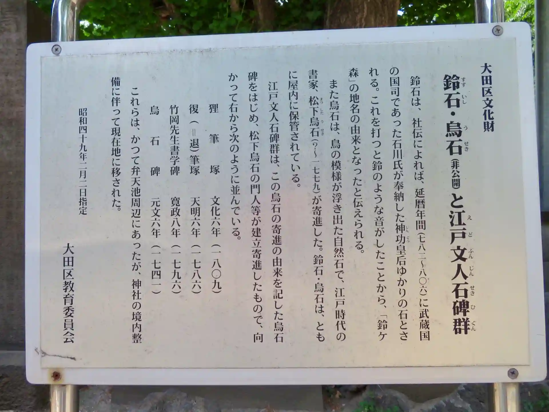 鈴石・烏石(非公開)と江戸文人石碑群について