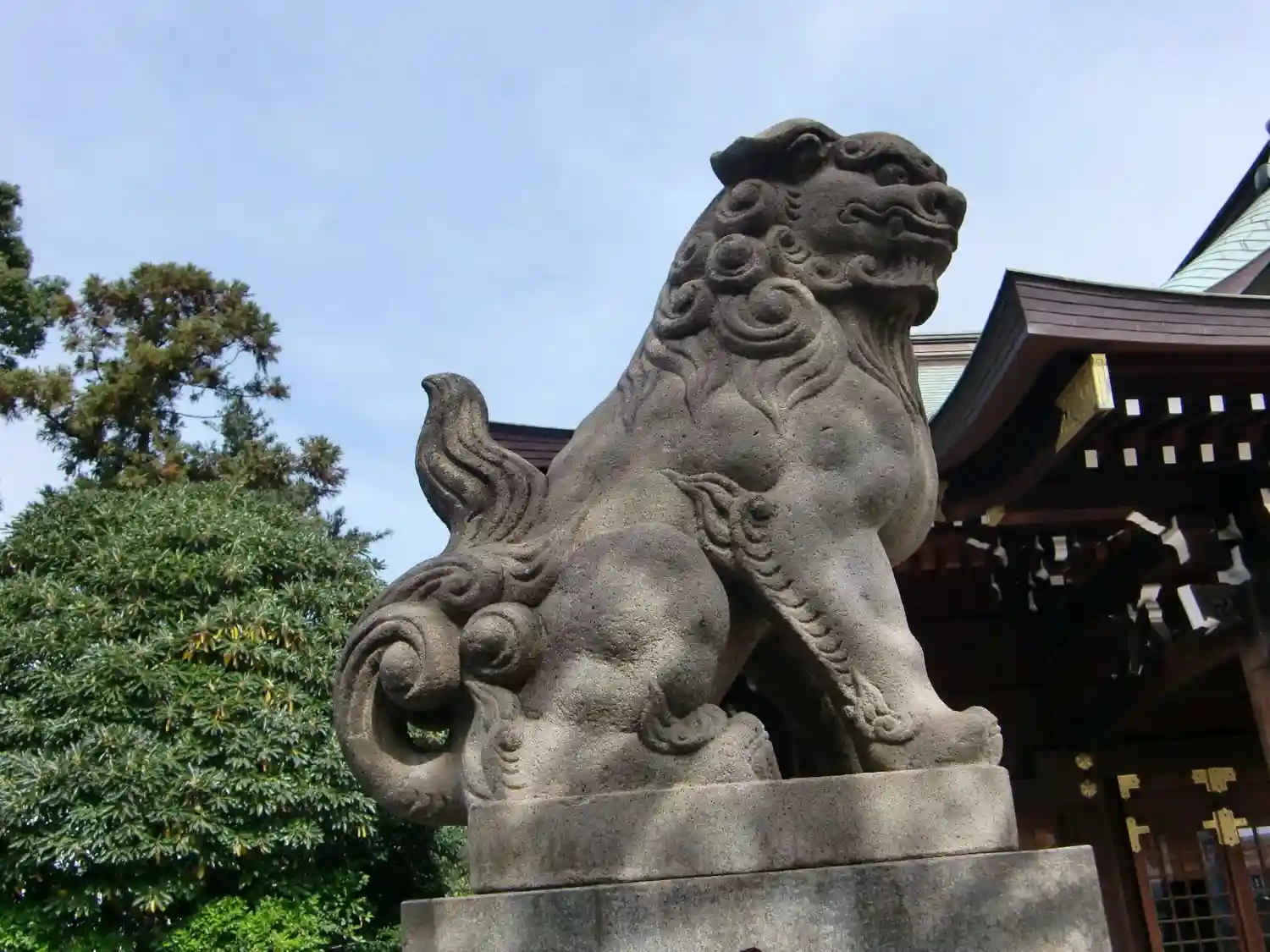 神楽殿前庭の狛犬さんです。