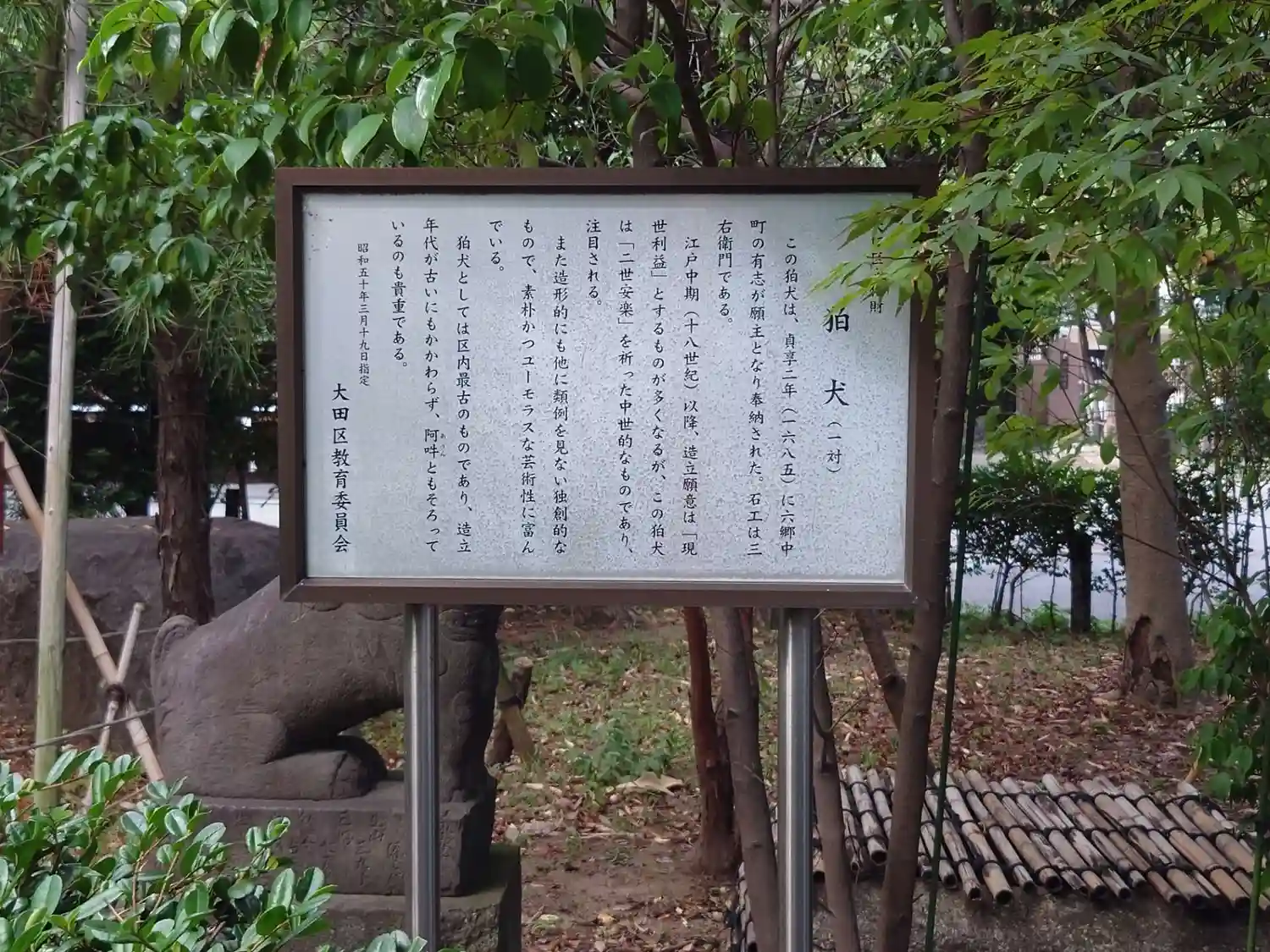 貞享二年(1685)奉納の狛犬、区内最古