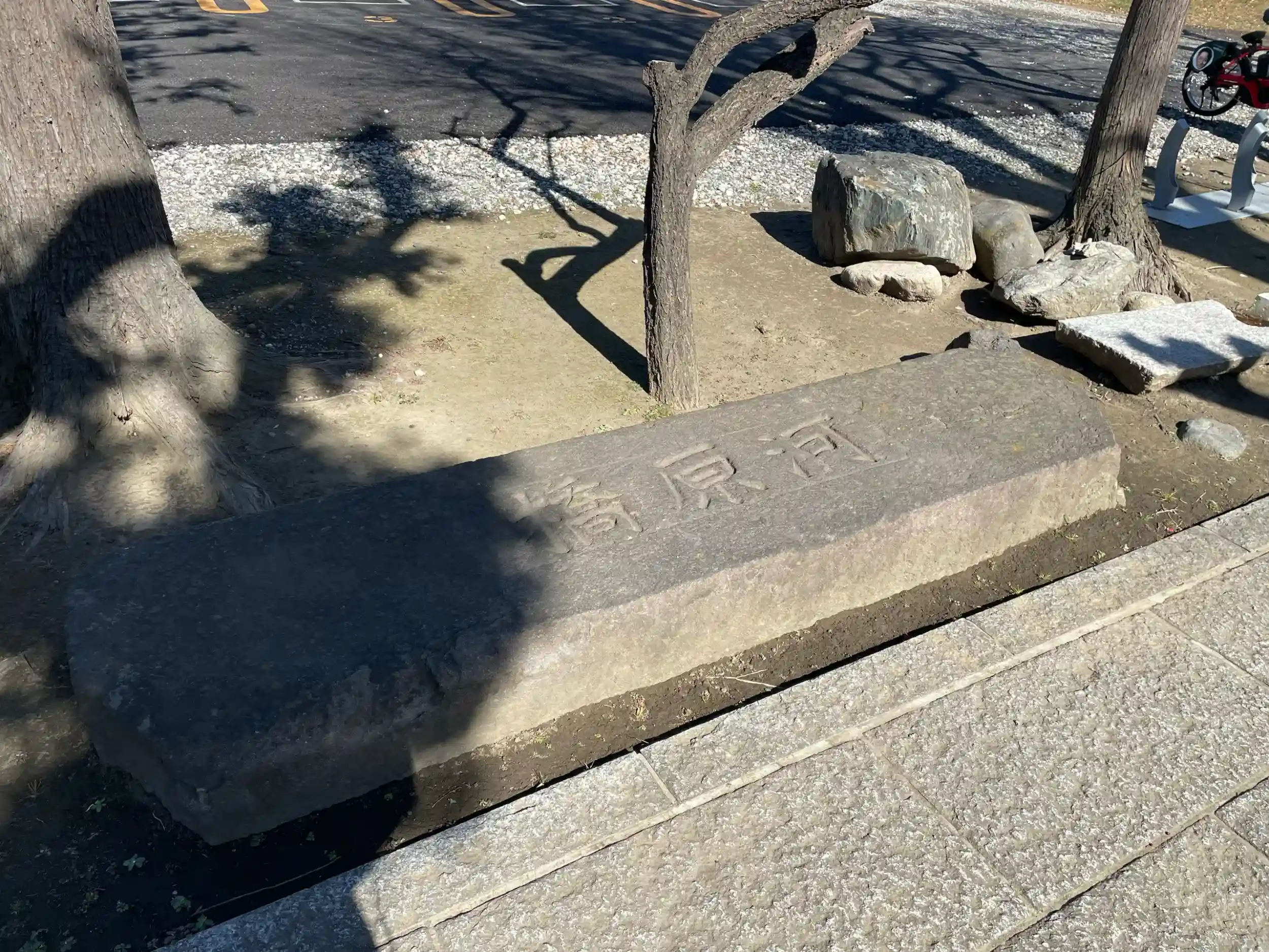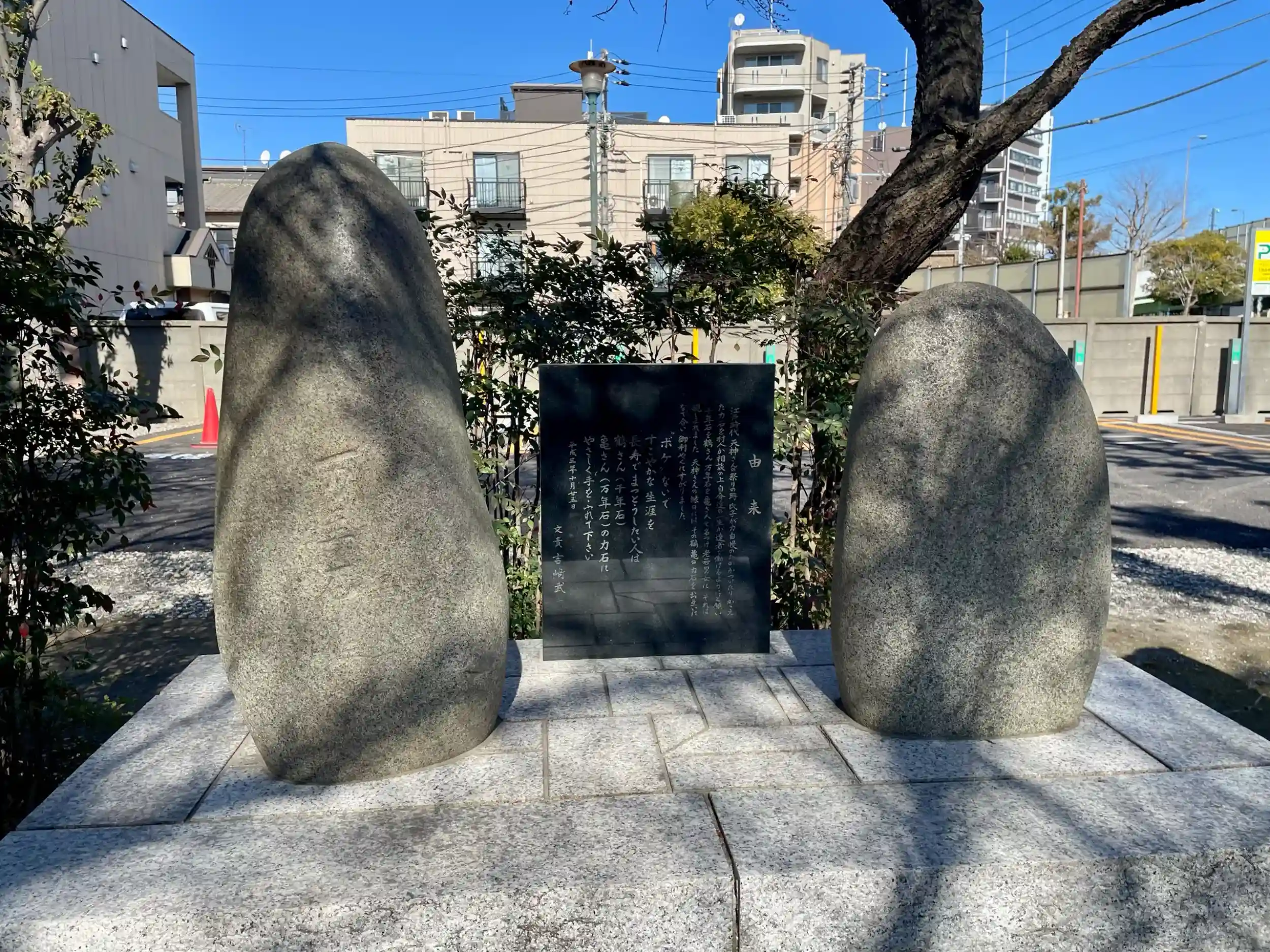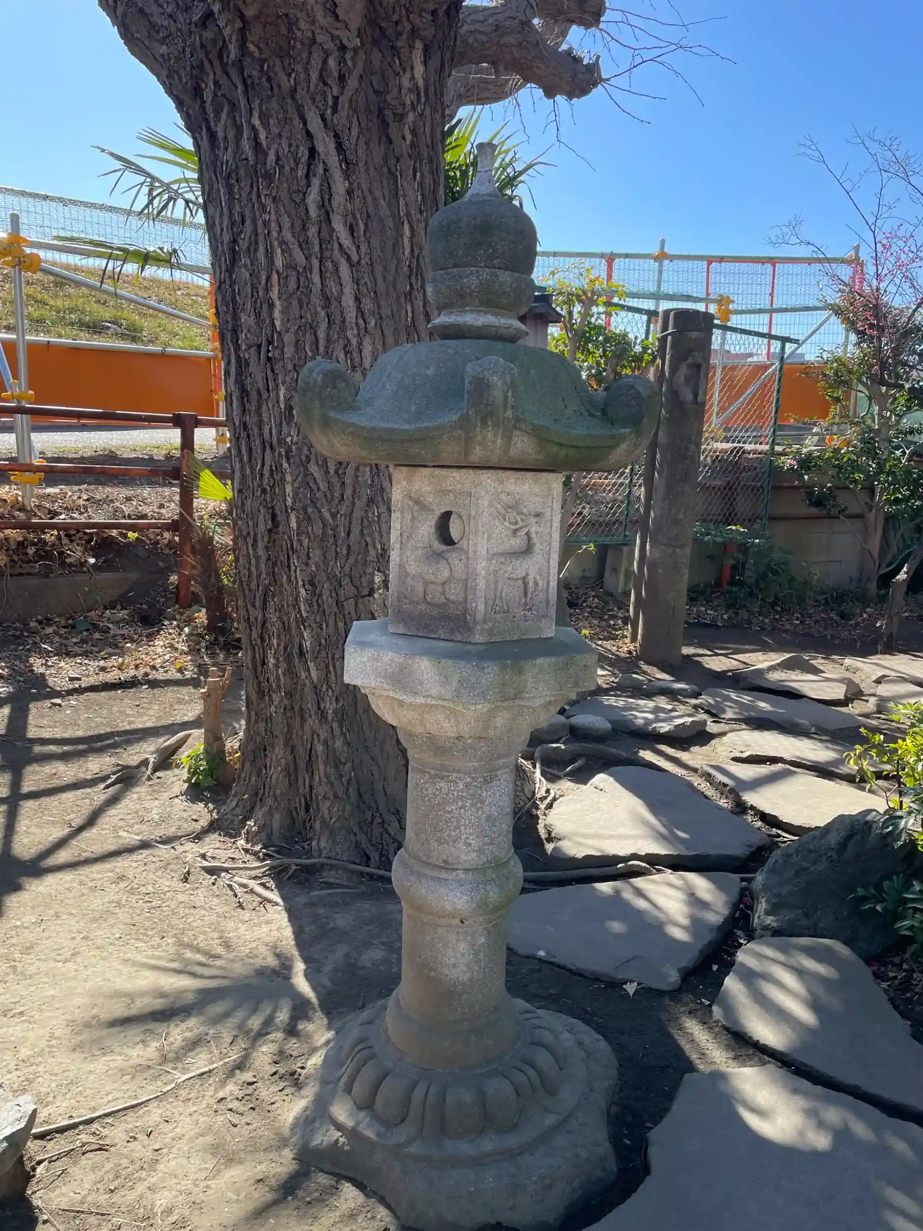 多摩川の六郷の渡しへ導く河原橋の踏み石と、「鶴さん」、「亀さん」と名付けられた力石が残される。