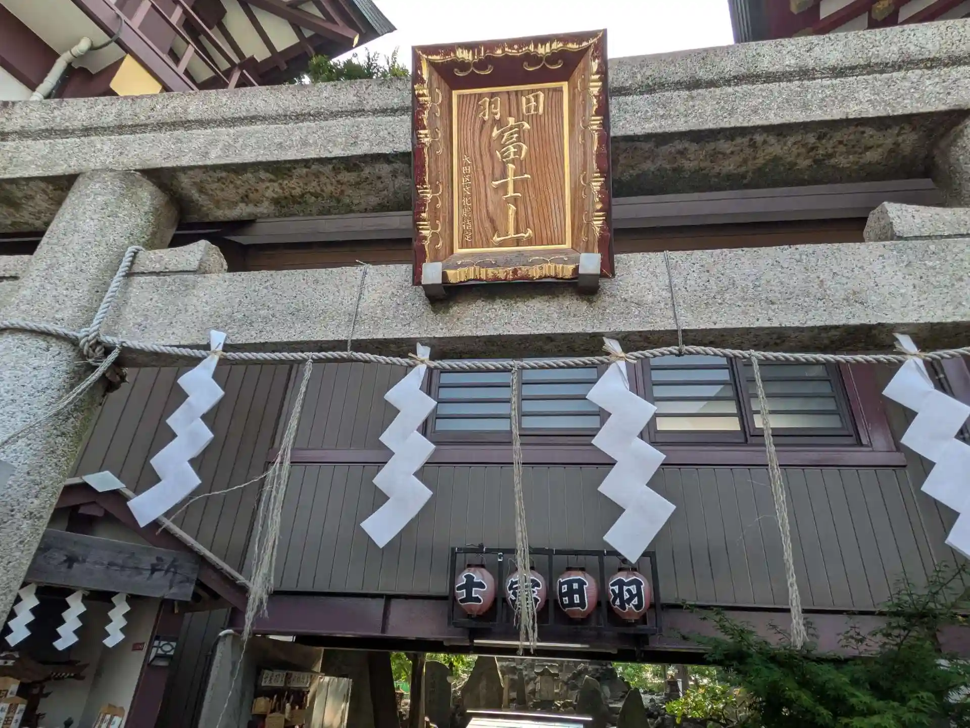「羽田富士」前の鳥居と扁額