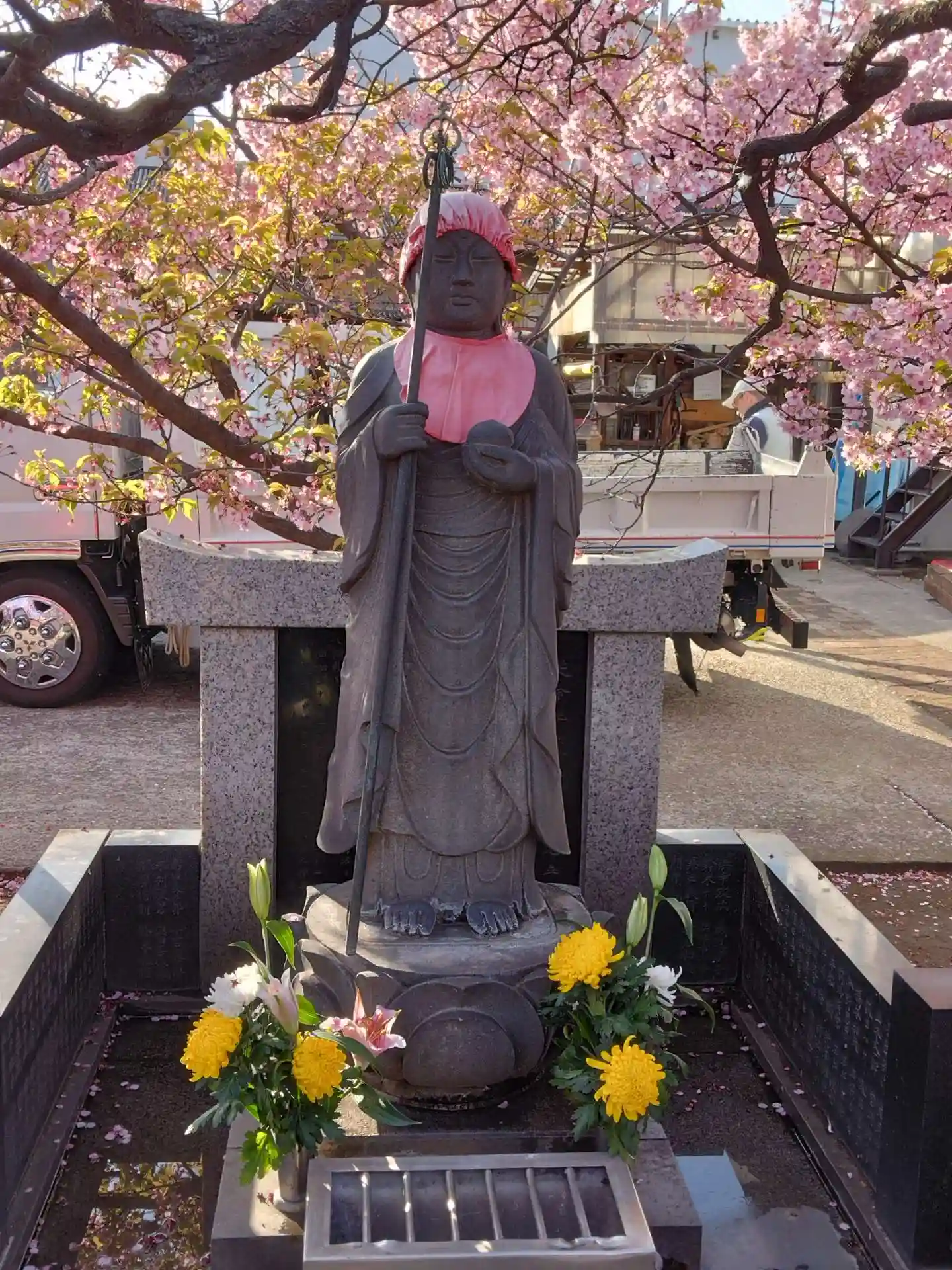 気になったのは、境内のすぐそばに一面のピンクの桜。