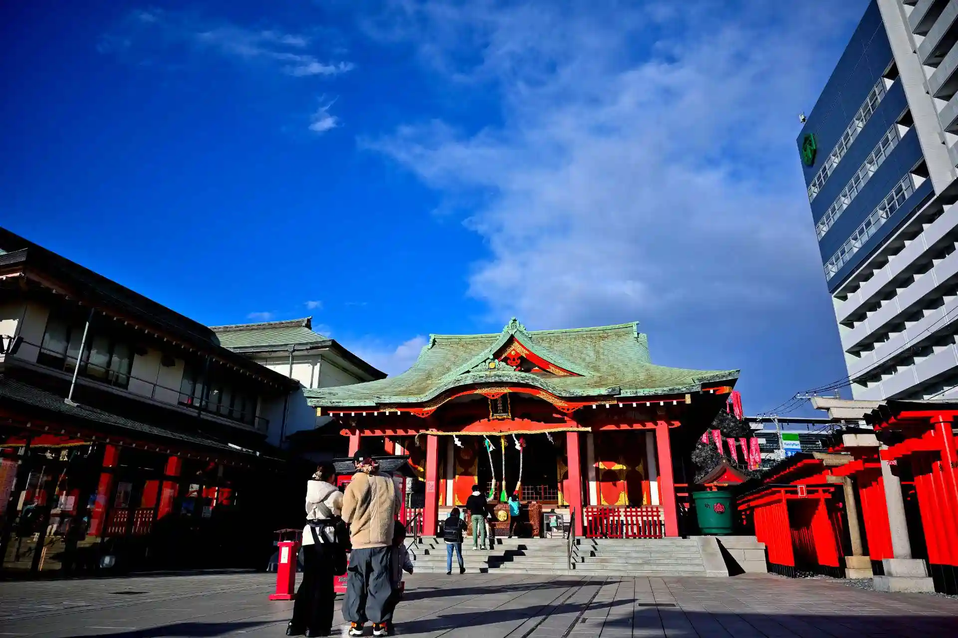 場所柄、境内はコンクリート造りでギュッと密集&立体化されていますが、すごい数の鳥居と複数の摂社があります。