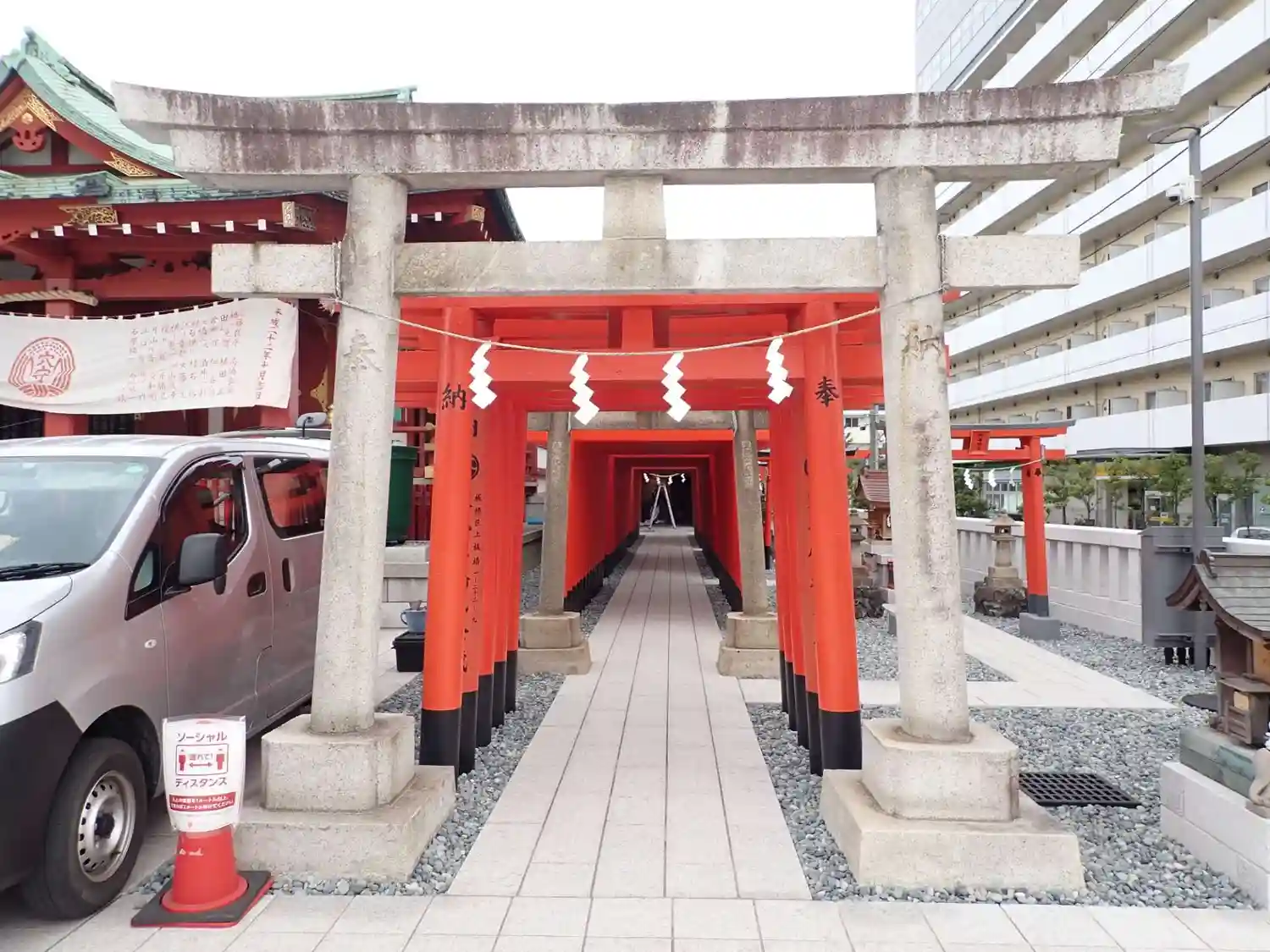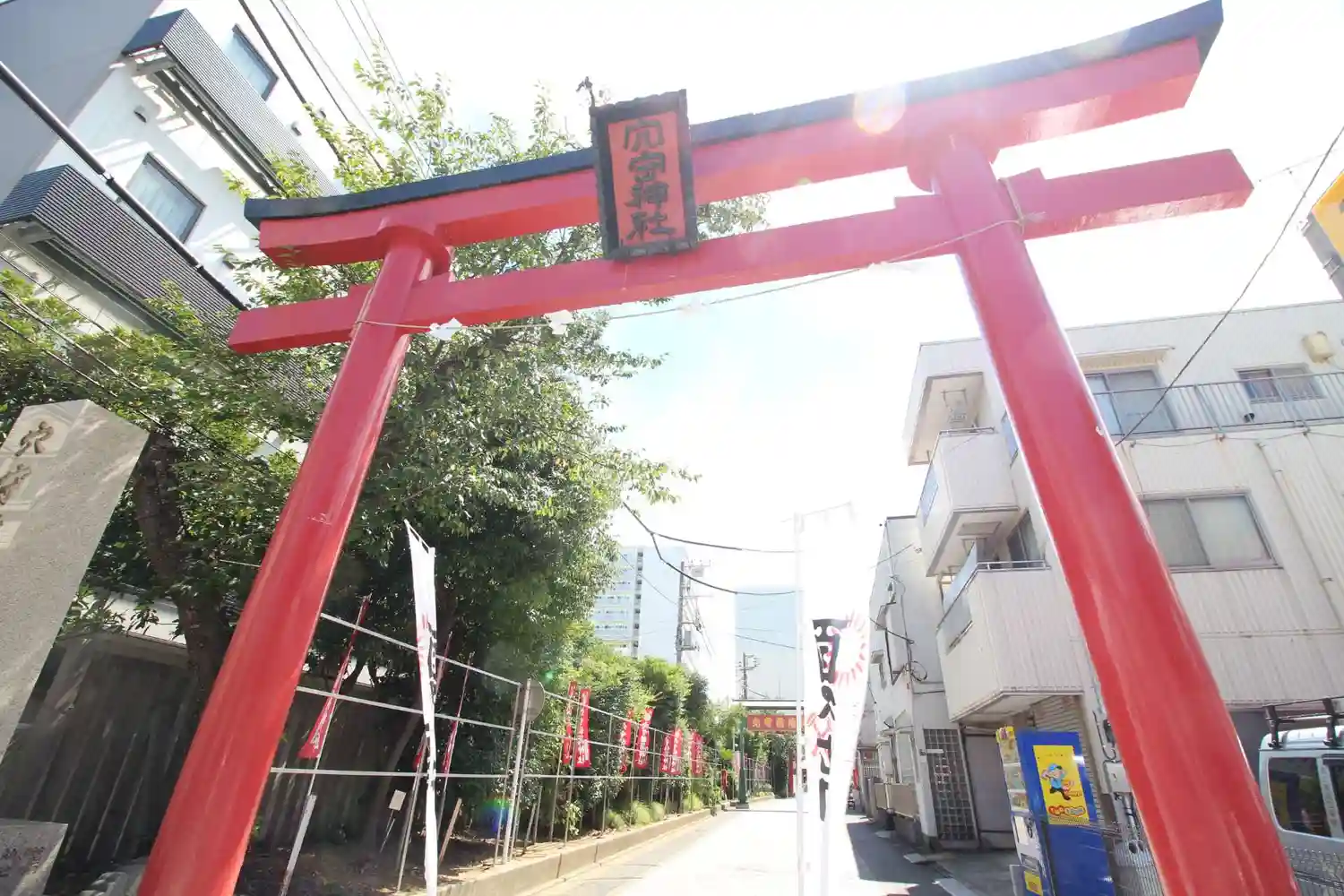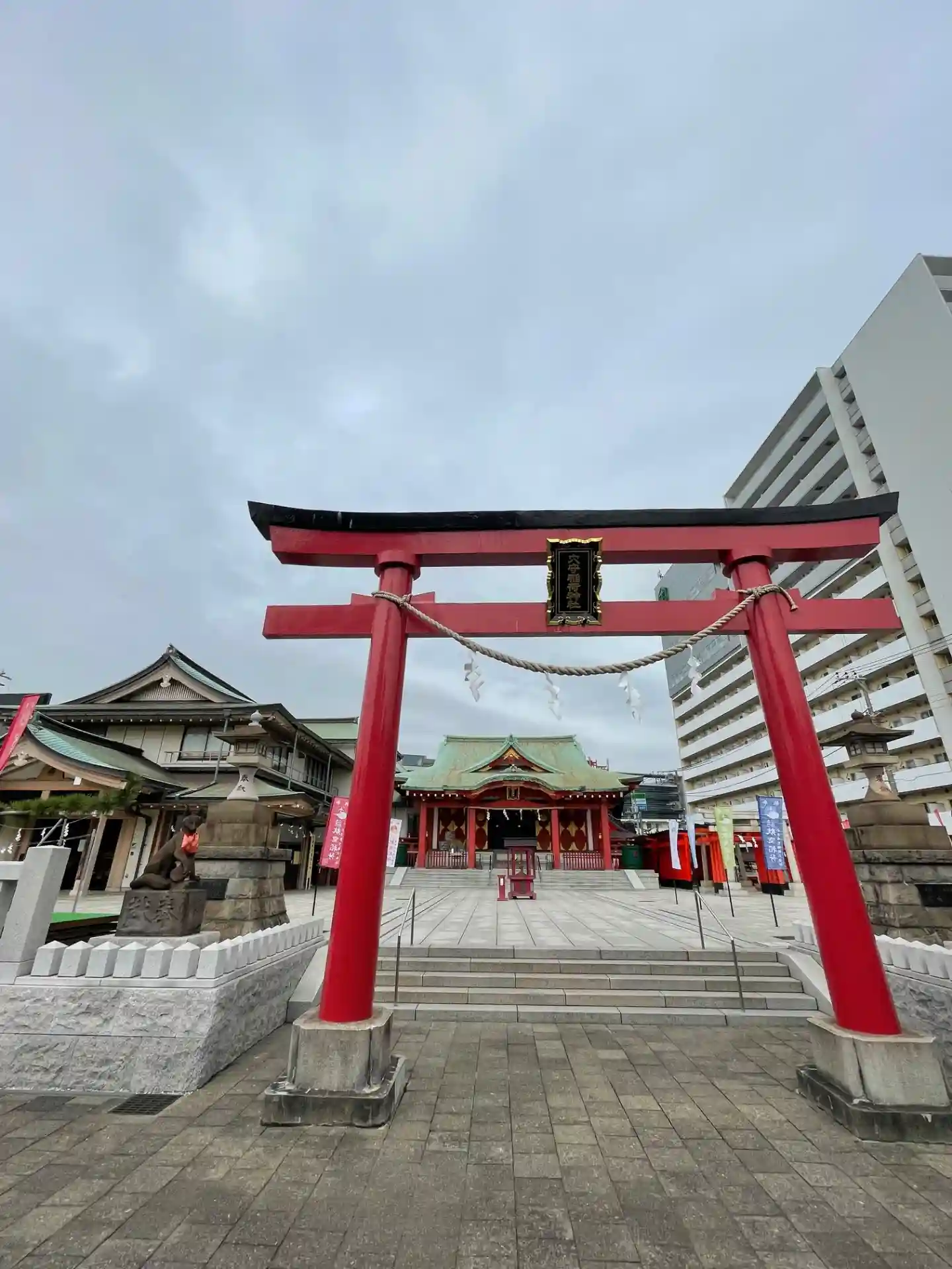 22.09.15。京急空港線「穴守稲荷駅」下車、徒歩3分。大田区羽田5丁目の商業地に鎮座。