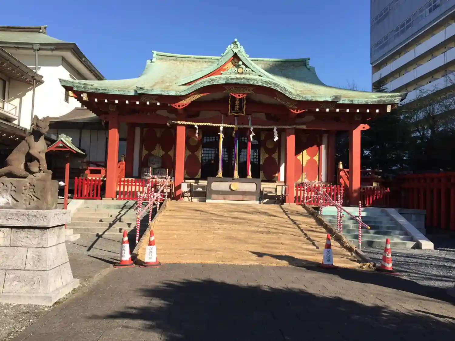 初詣用に階段前に坂道板が設置されてました。