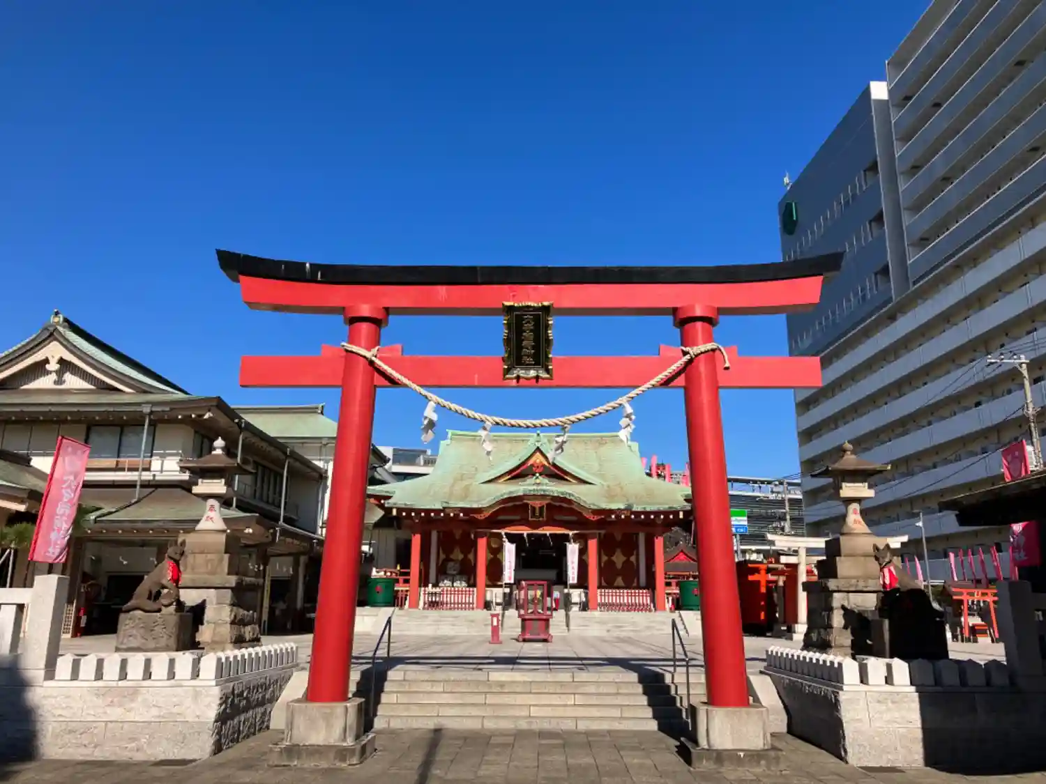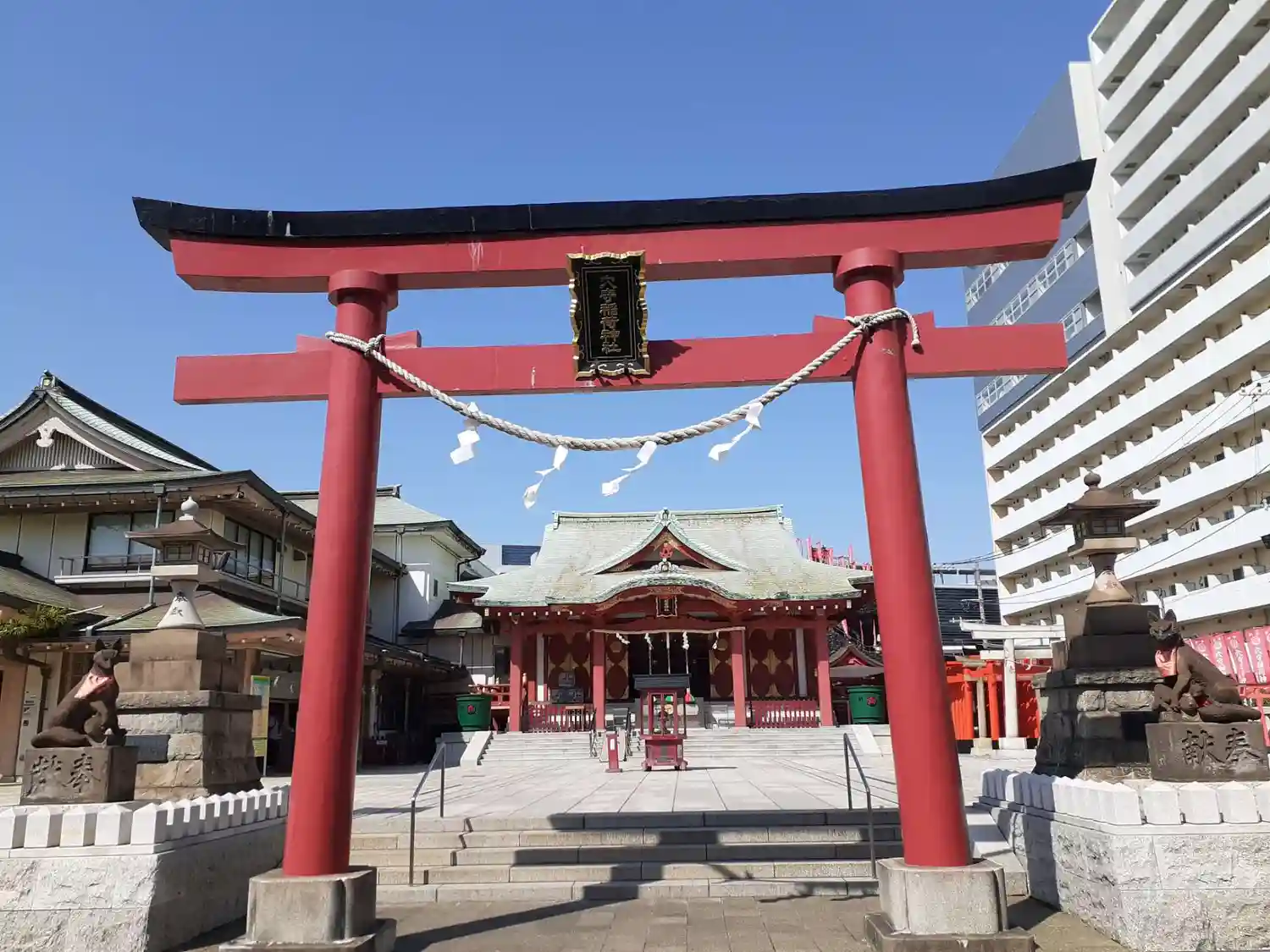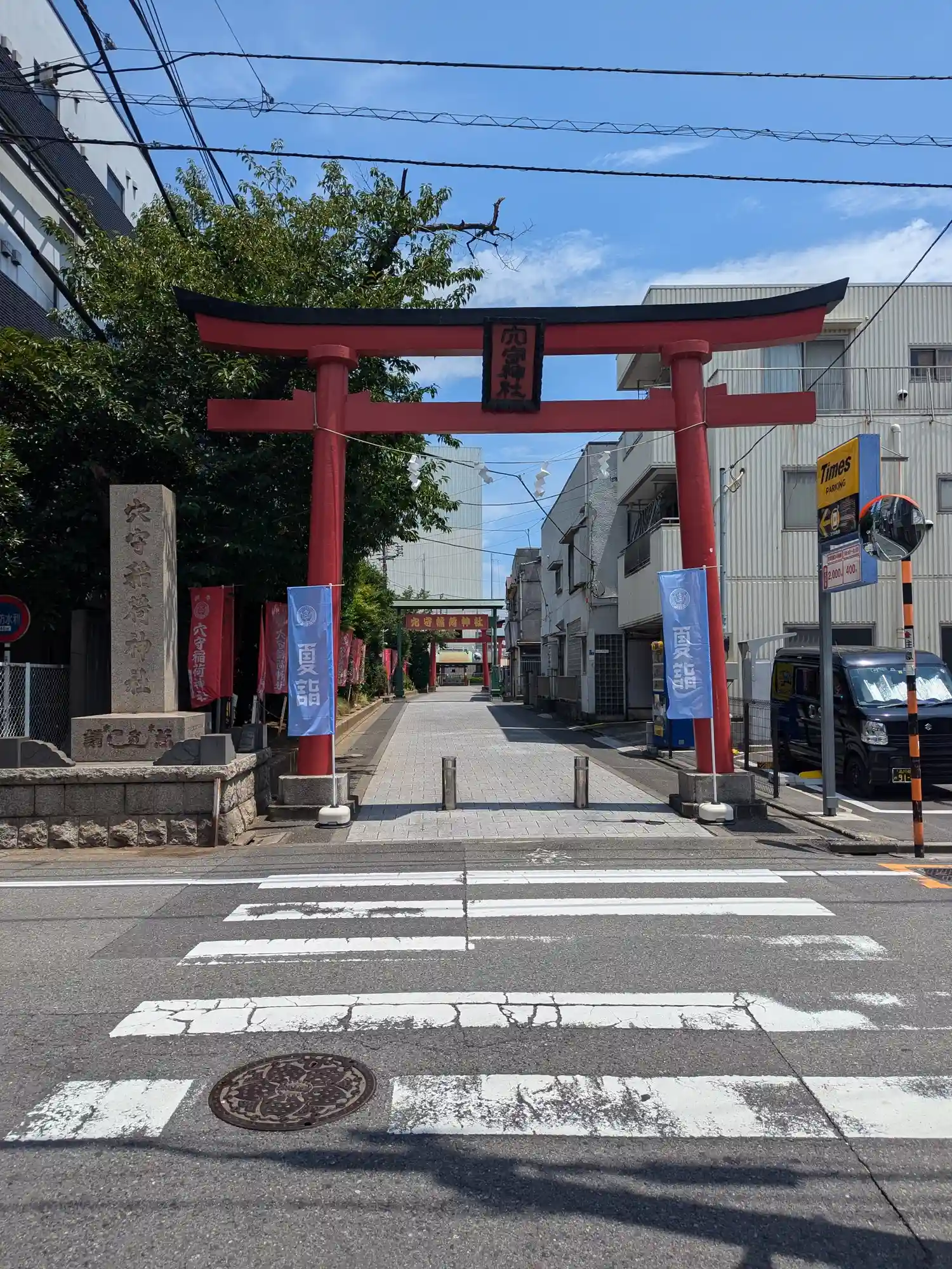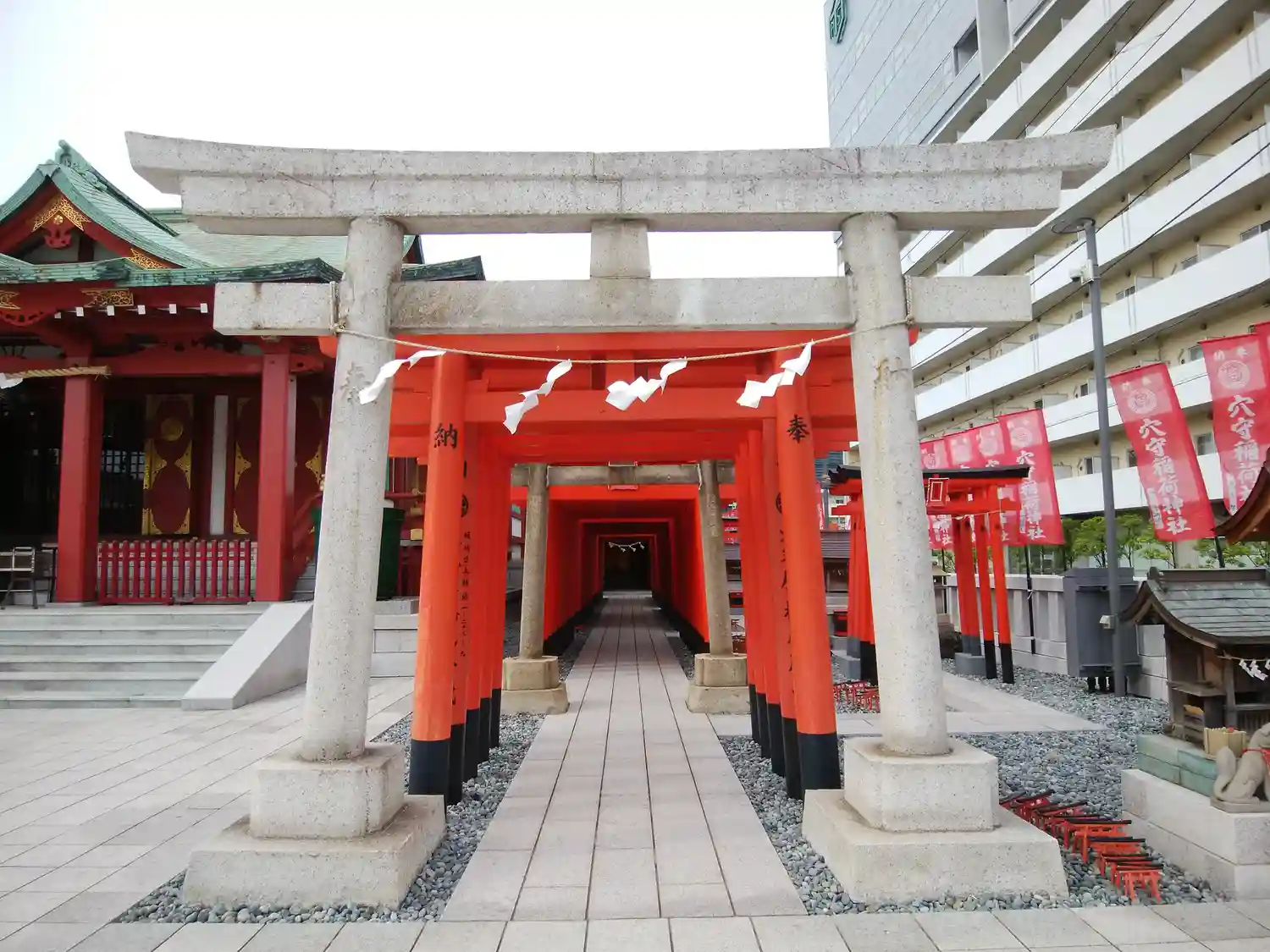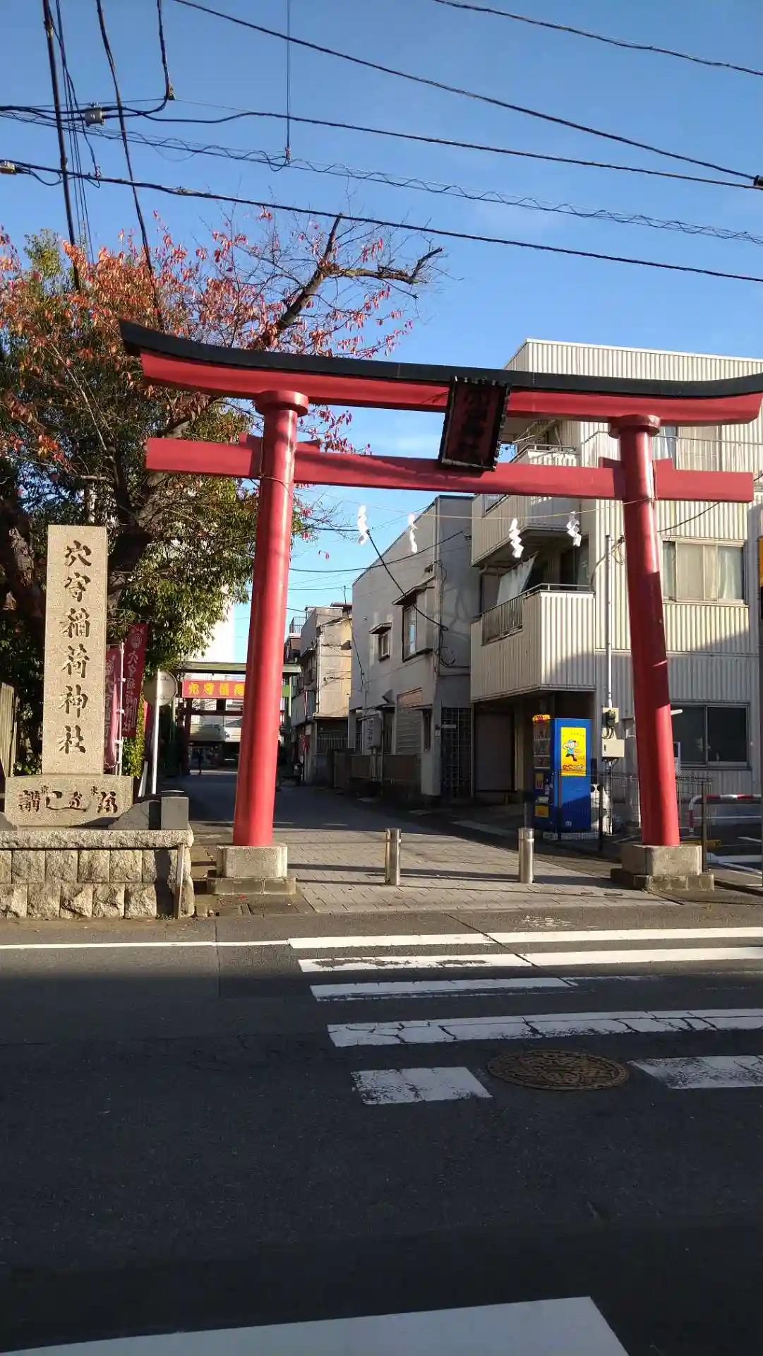 22.09.15。京急空港線「穴守稲荷駅」下車、徒歩3分。大田区羽田5丁目の商業地に鎮座。