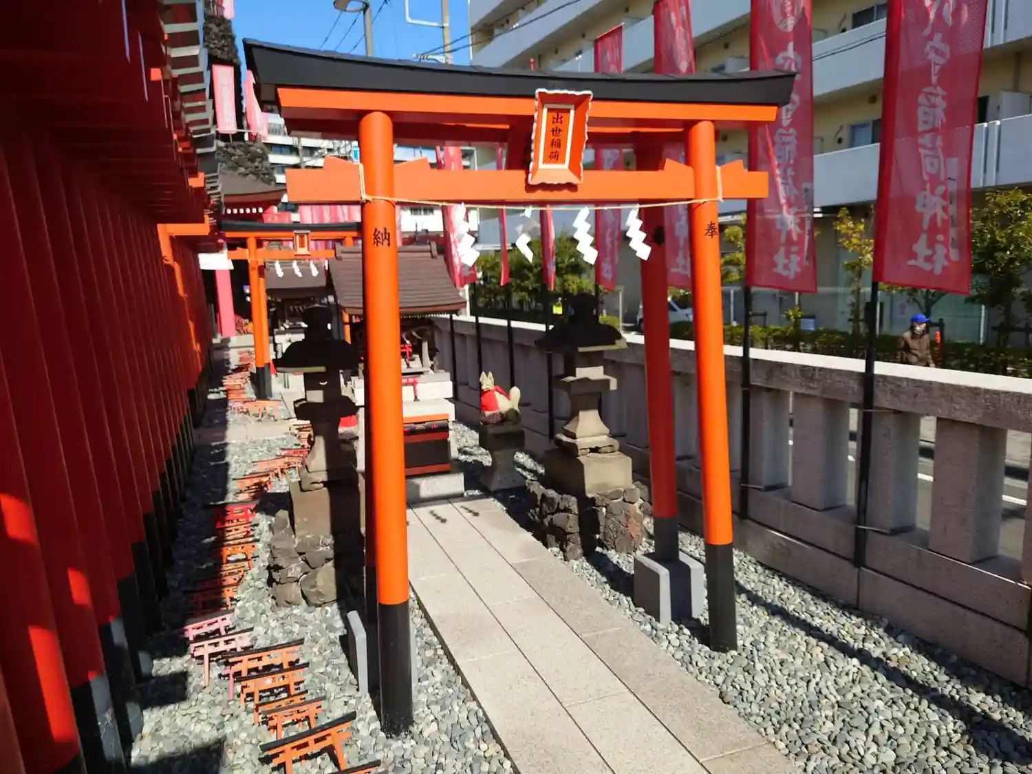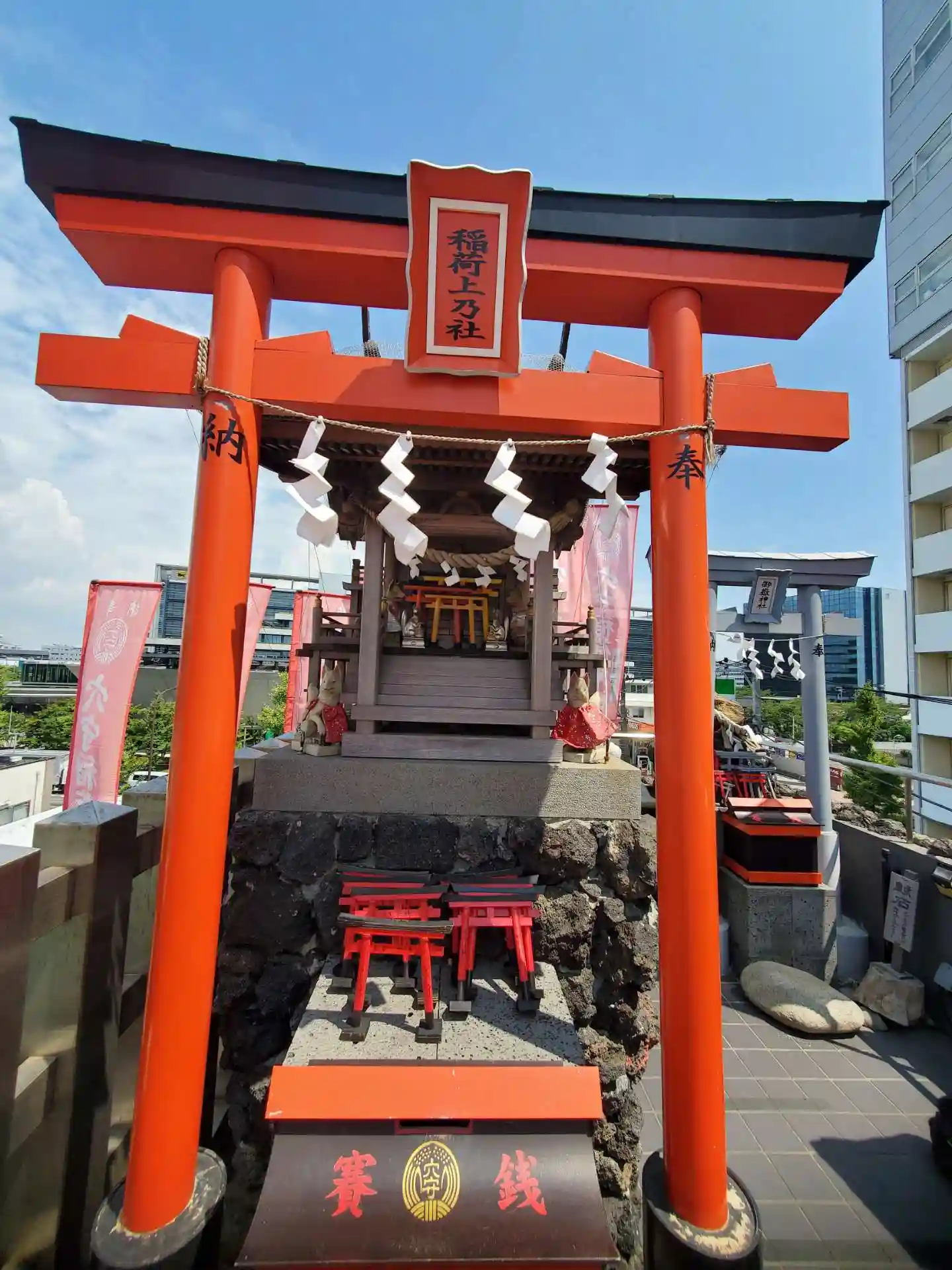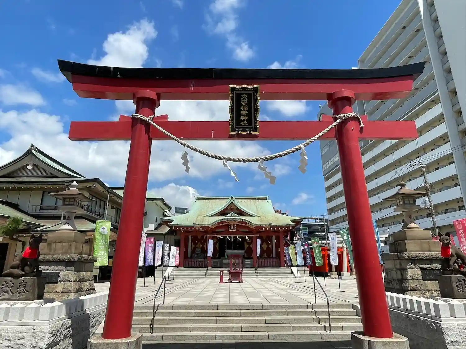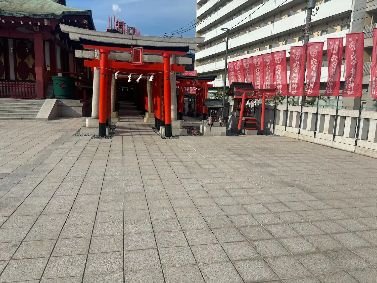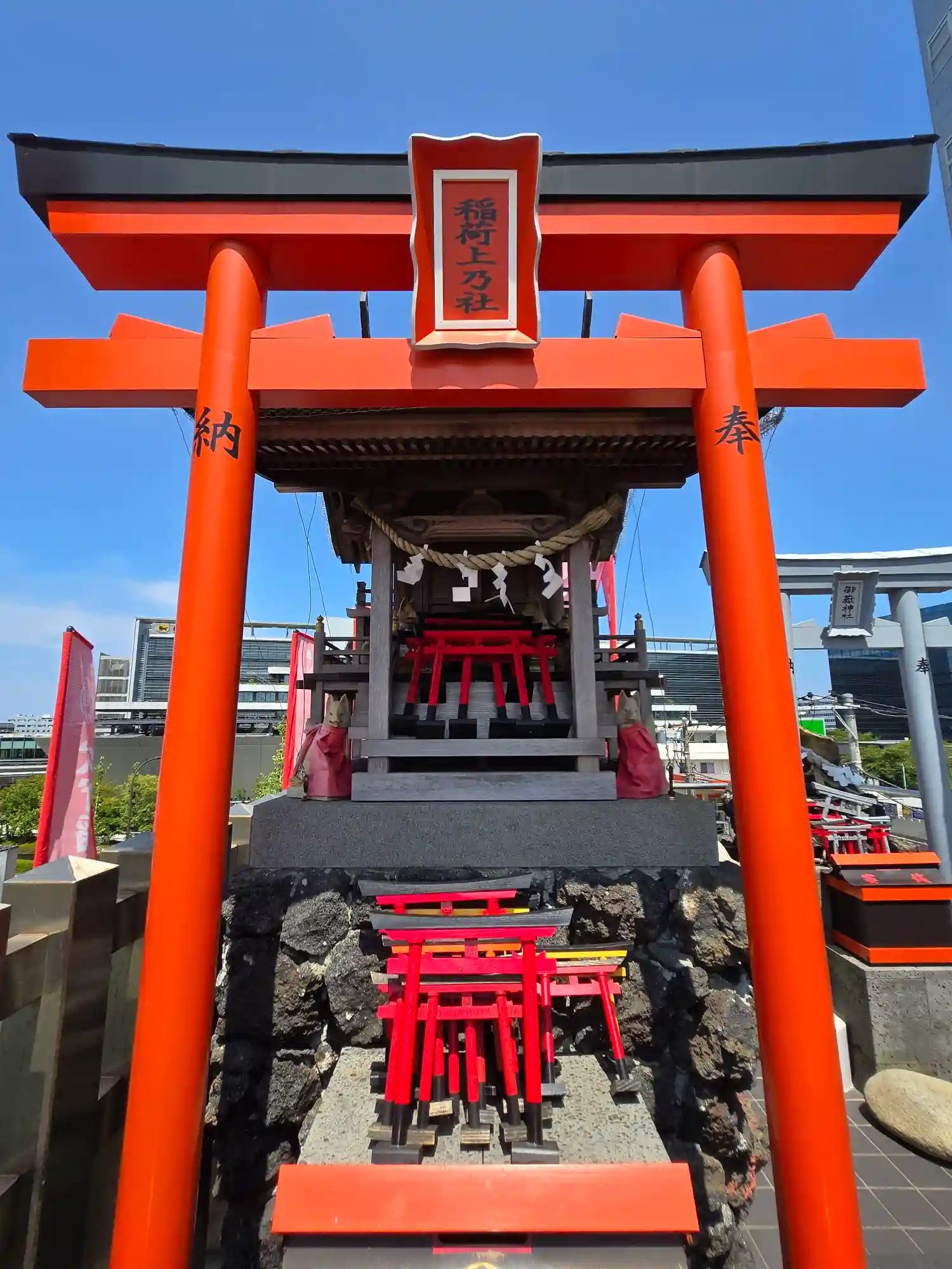 22.09.15。京急空港線「穴守稲荷駅」下車、徒歩3分。大田区羽田5丁目の商業地に鎮座。