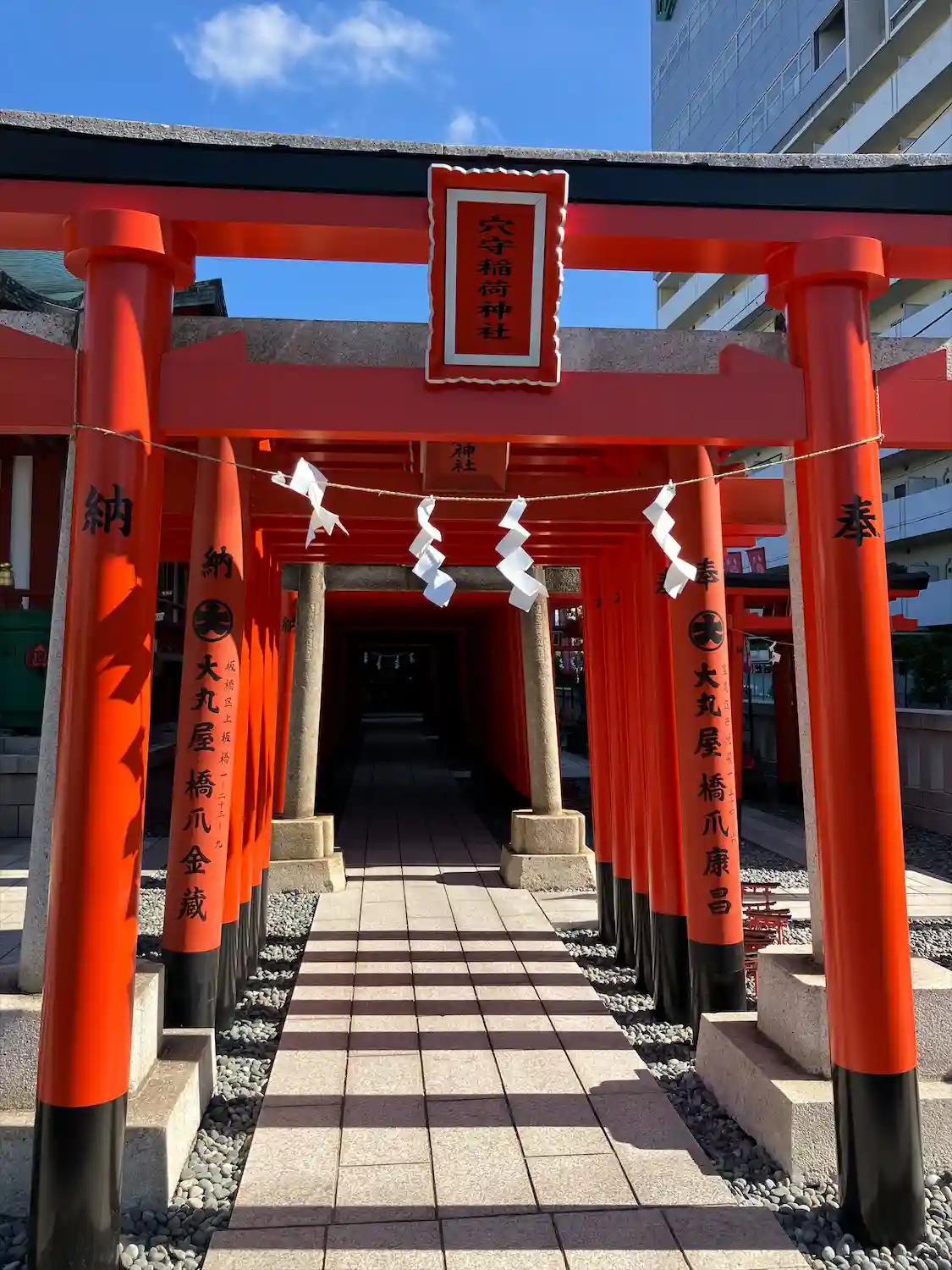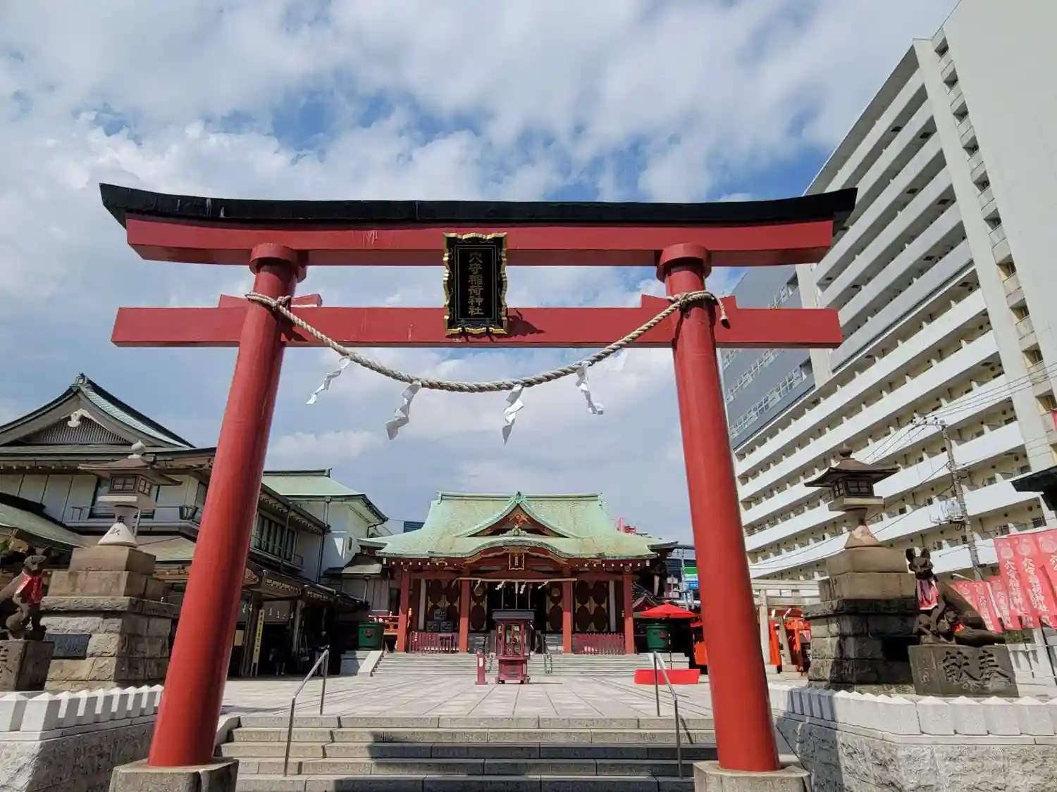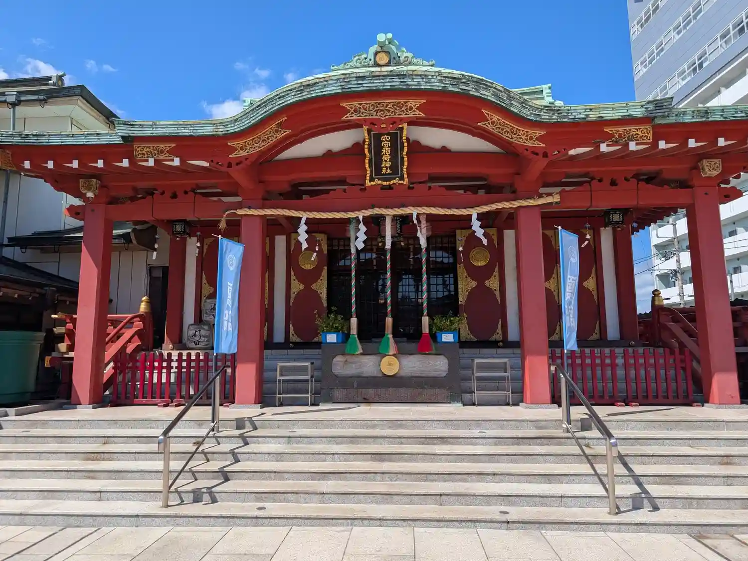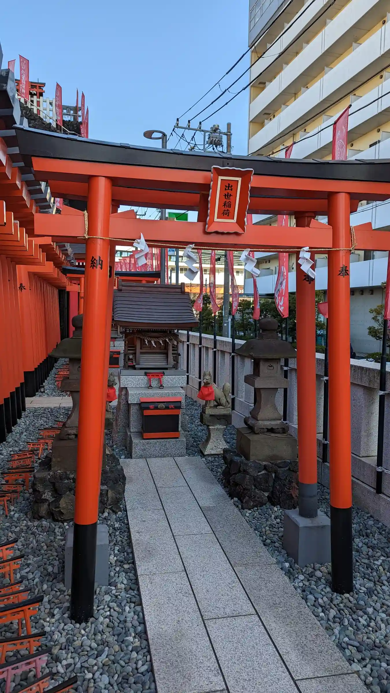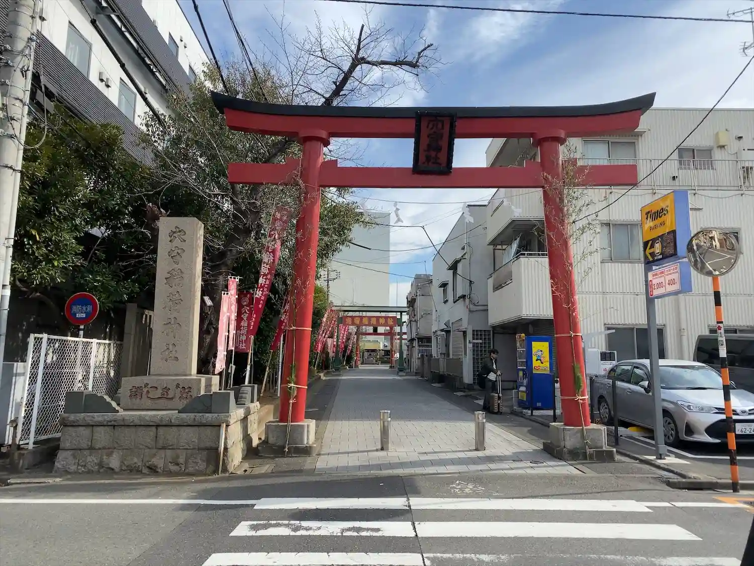 22.09.15。京急空港線「穴守稲荷駅」下車、徒歩3分。大田区羽田5丁目の商業地に鎮座。
