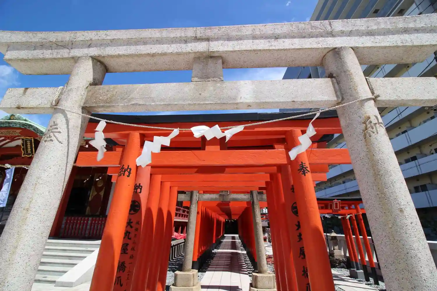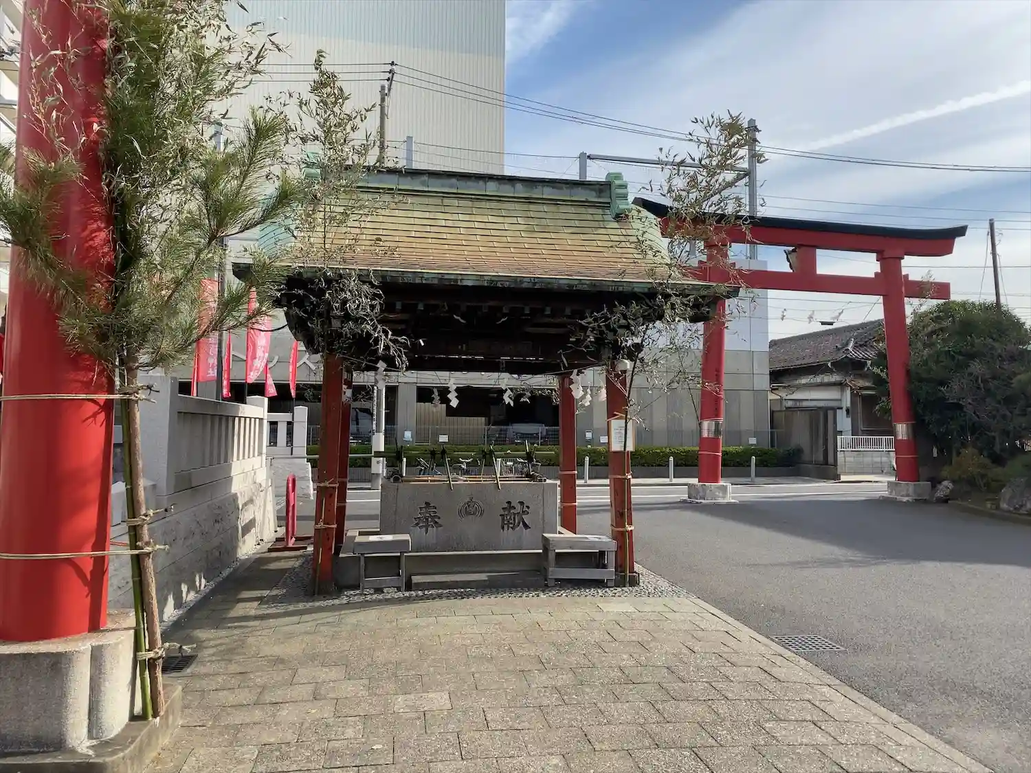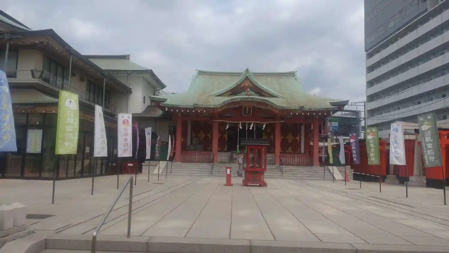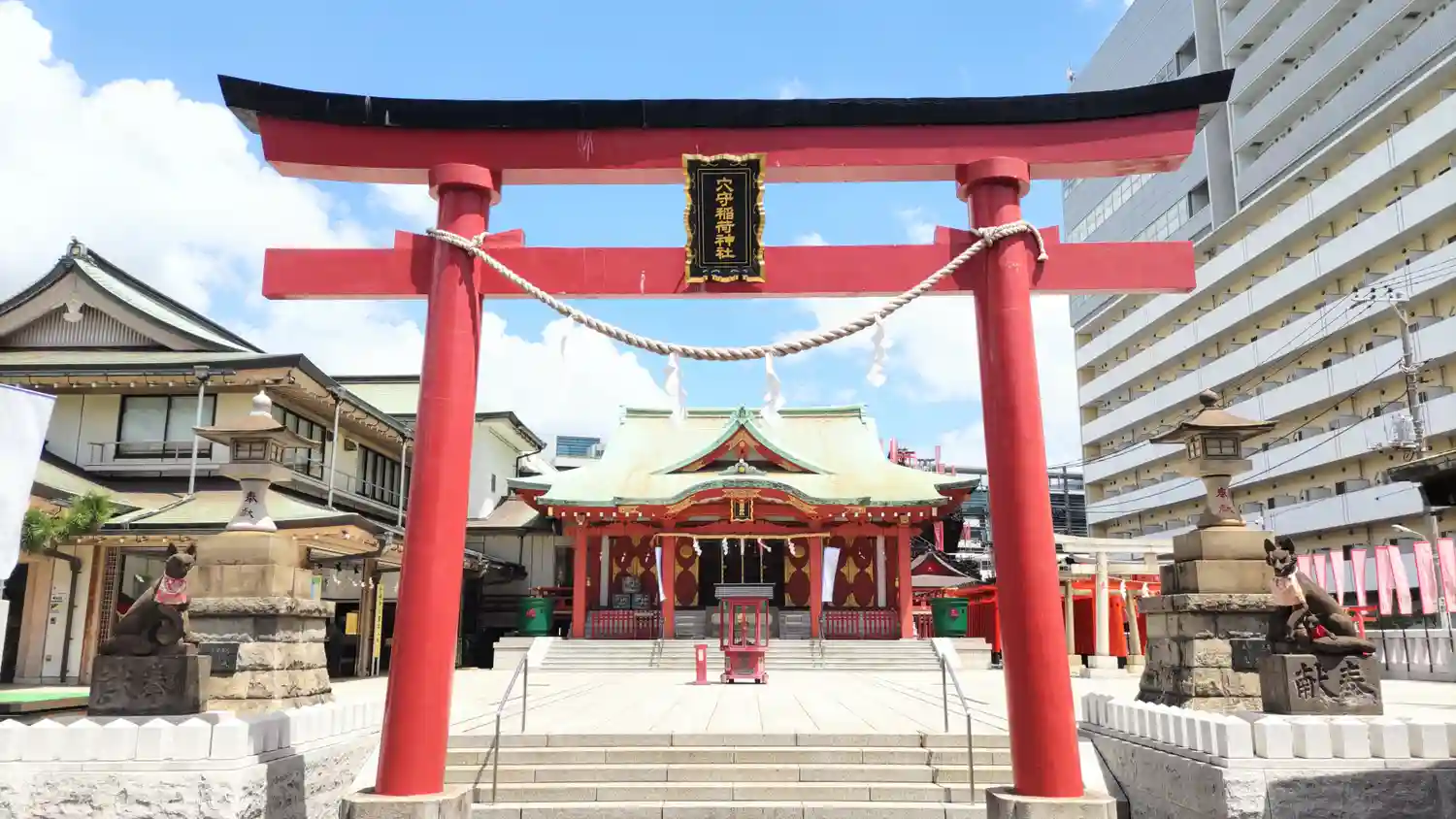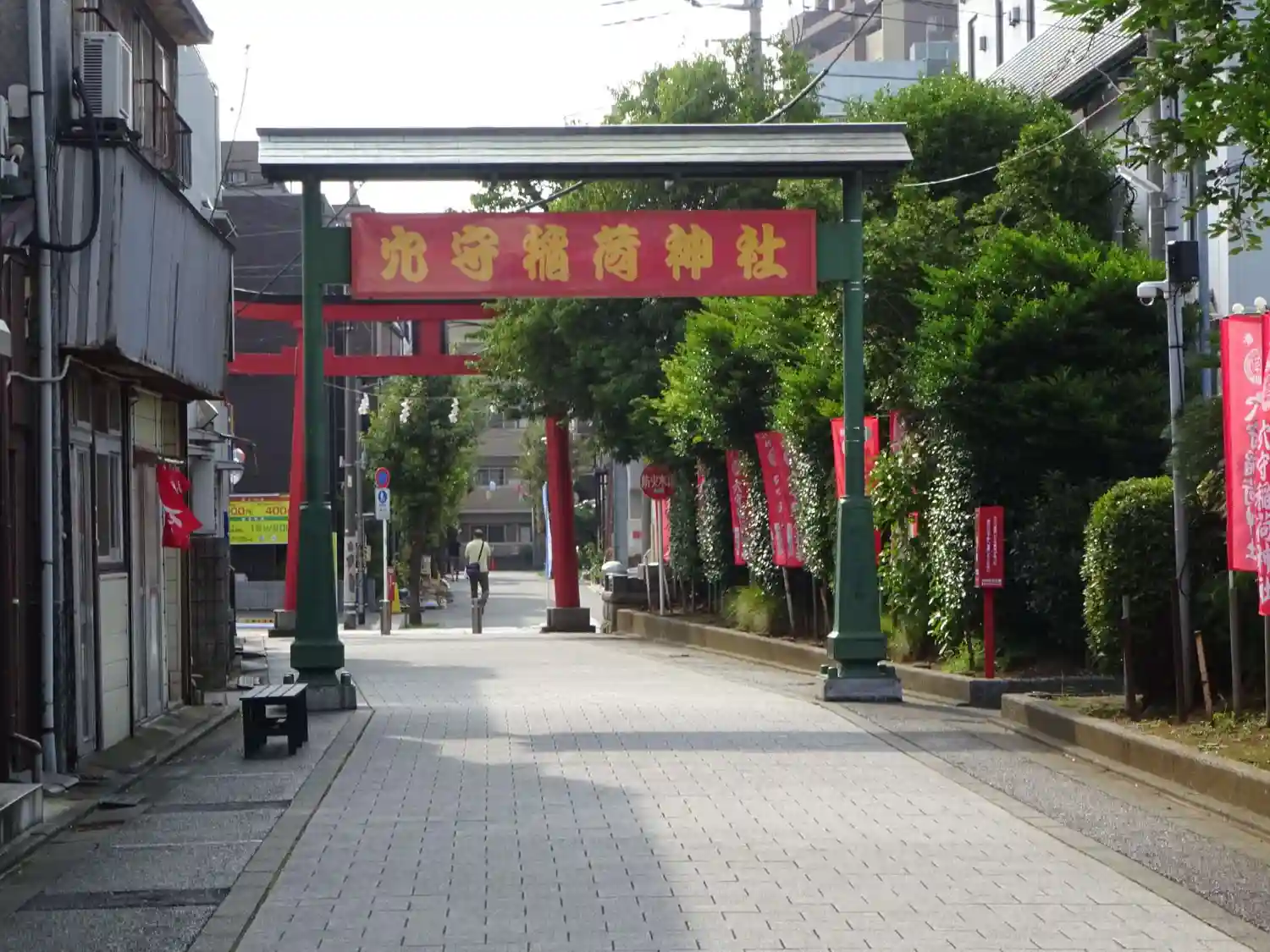 22.09.15。京急空港線「穴守稲荷駅」下車、徒歩3分。大田区羽田5丁目の商業地に鎮座。