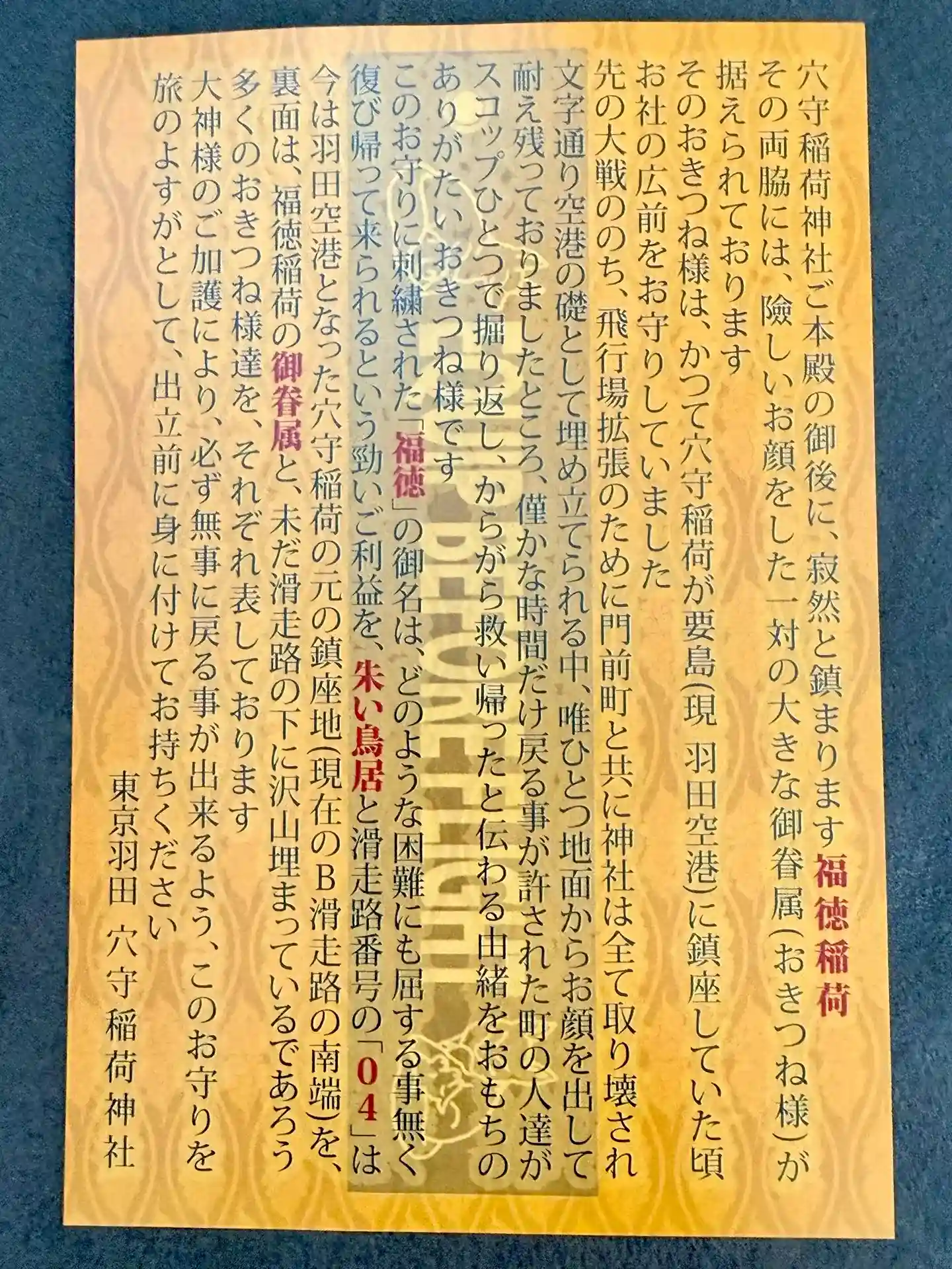 航空稲荷の栞を奉製致しました。