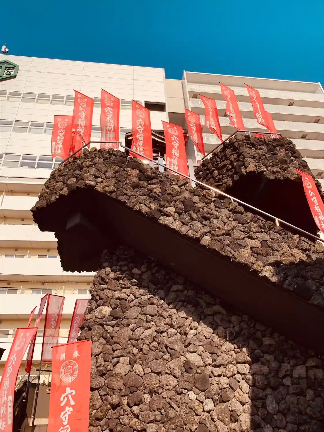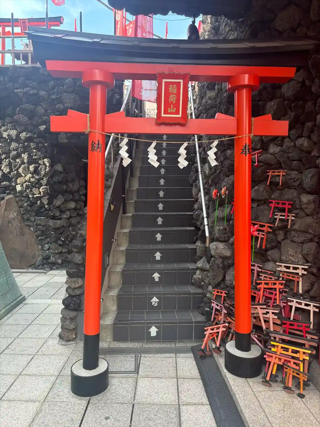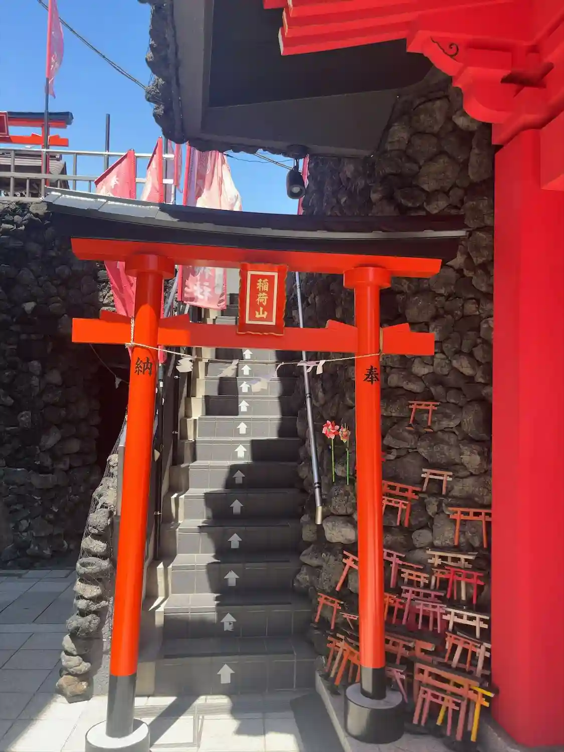 岩山の階段を登って行くと天辺にお稲…