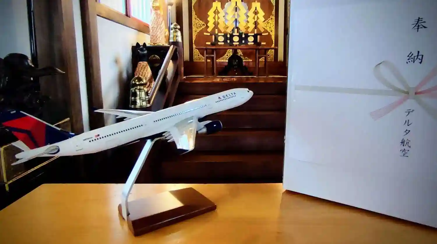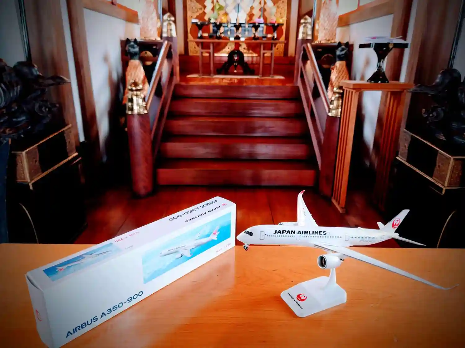 日本航空株式会社さまより、AIRBUS A350-900の飛行機ミニチュアモデルをご奉納頂きました。