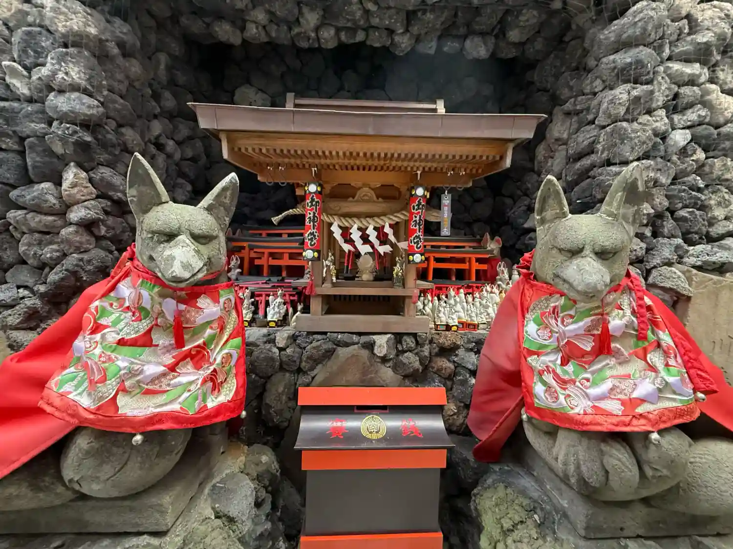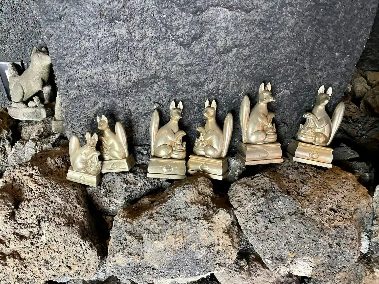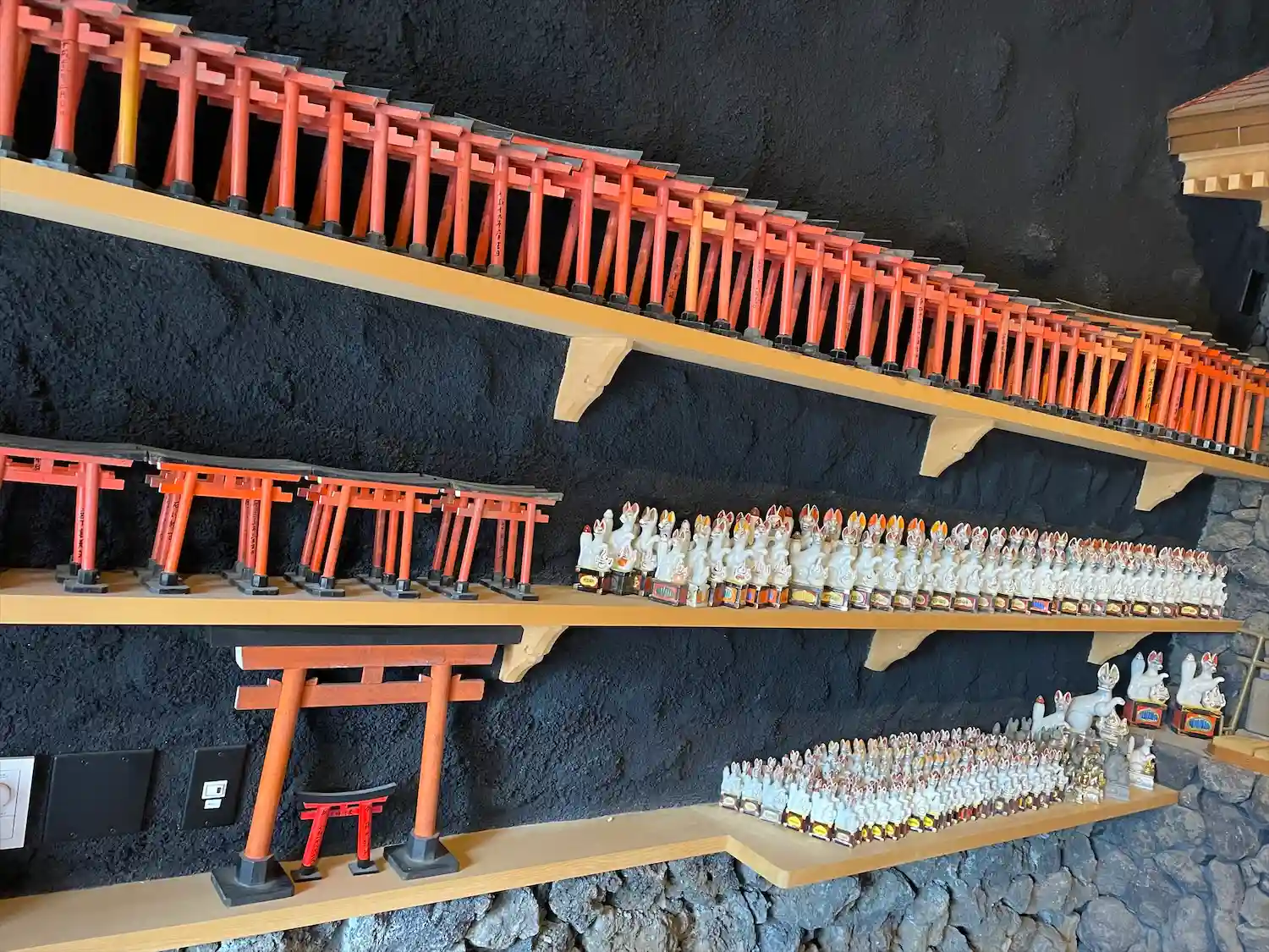 壁面にズラリと並ぶ狐さん達(写真ボケボケでわかりにくい😂)
