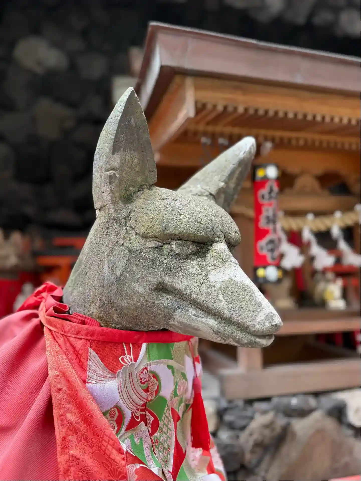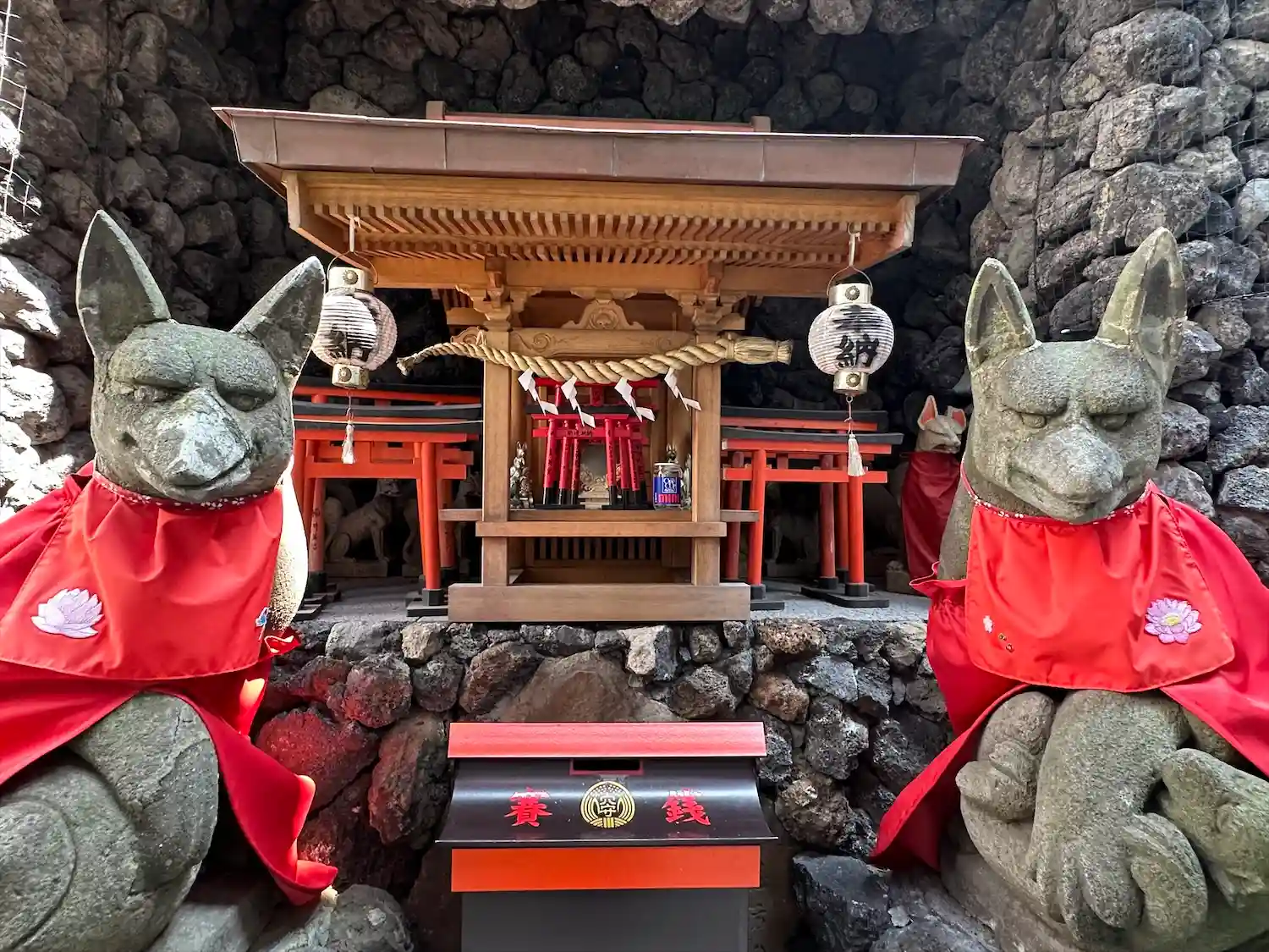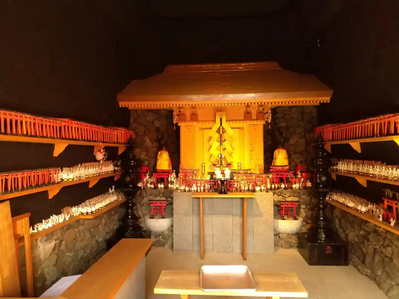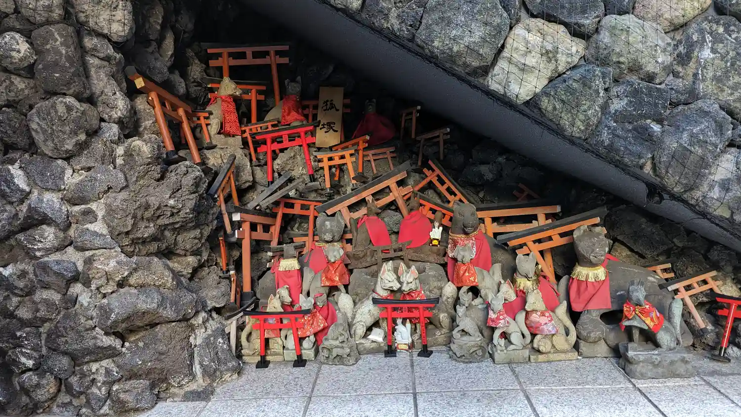 壁面にズラリと並ぶ狐さん達(写真ボケボケでわかりにくい😂)