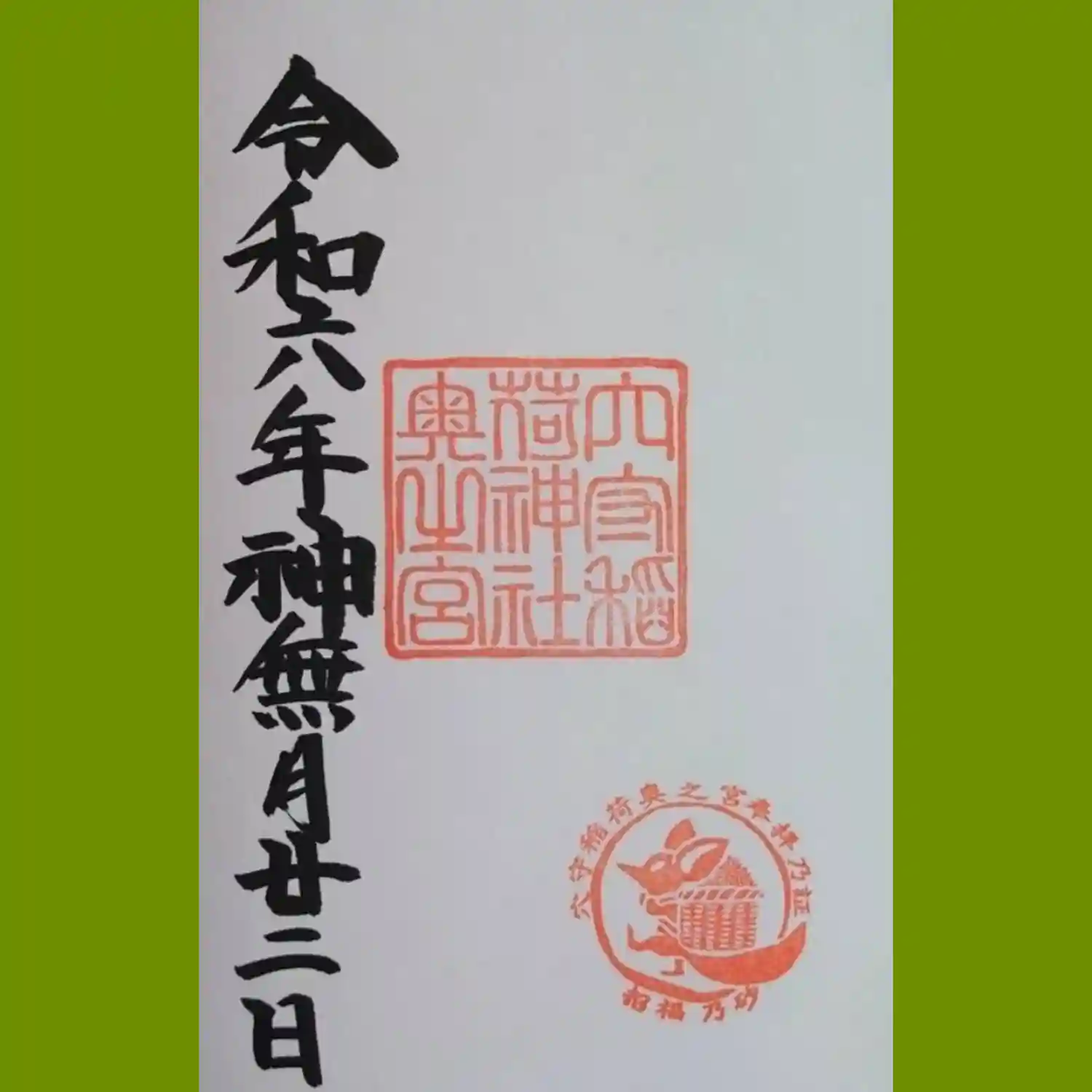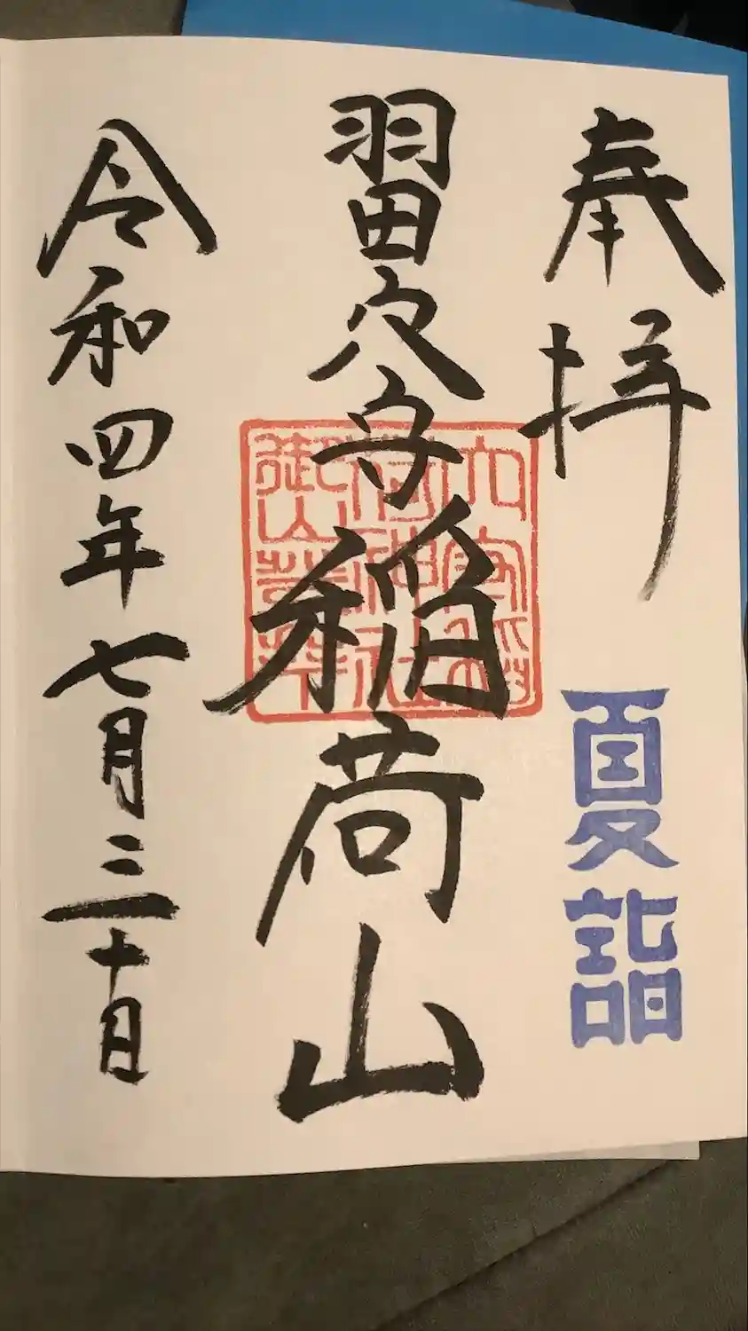 稲荷山の御朱印を直書きでいただきました