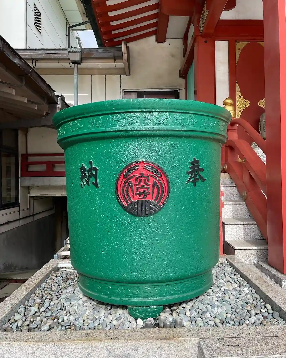 拝殿横の天水桶〜鮮やかでステキ✨