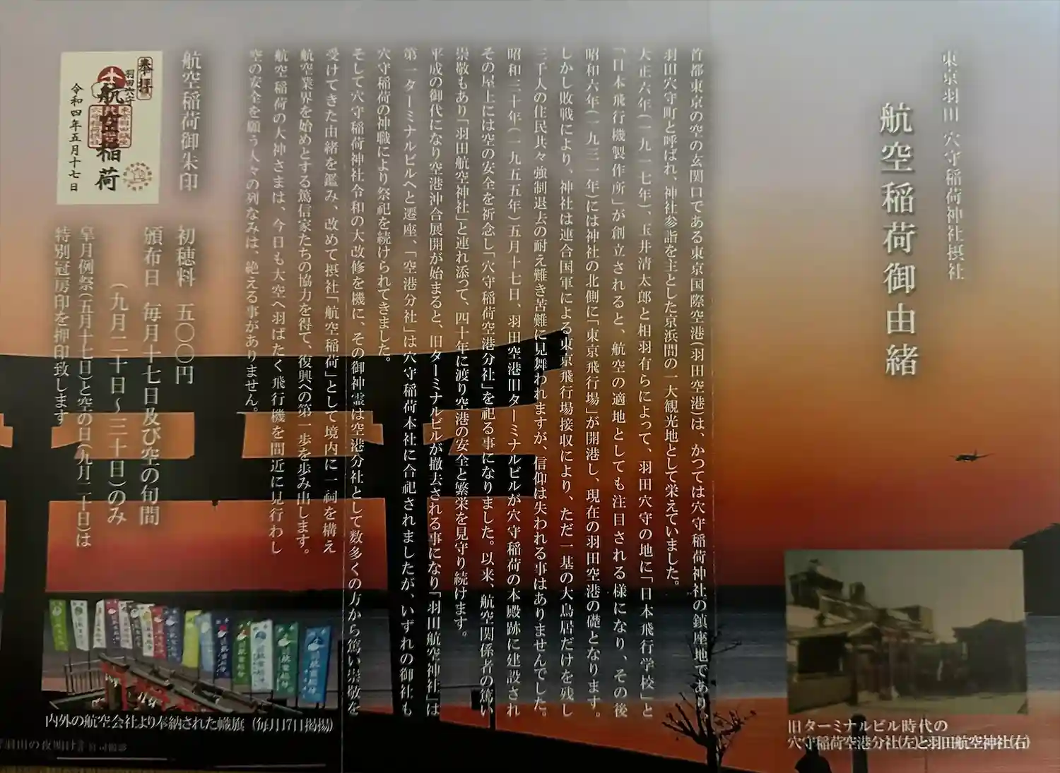 毎月17日と九月二十日から三〇日のみ航空稲荷の御朱印拝受出来ます。