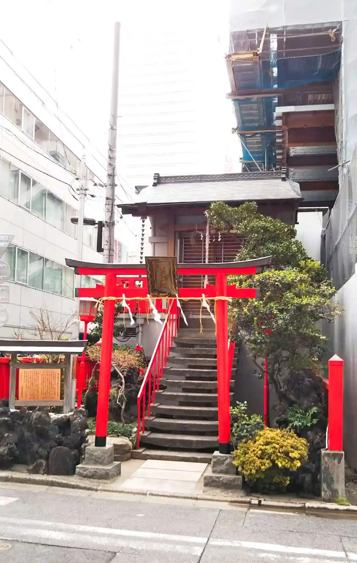 お隣も向かい側もビルの建設工事中。騒々しい中に赤い鳥居が目立ってました!