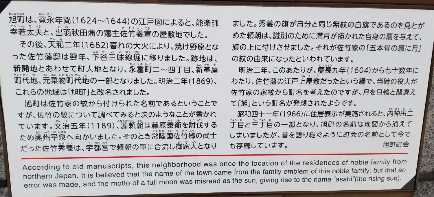 寛永12年秋田佐竹藩江戸屋敷鬼門除けのため、稲荷(宇迦之御魂神)を勧誘建立したのが始まりと伝えられ…