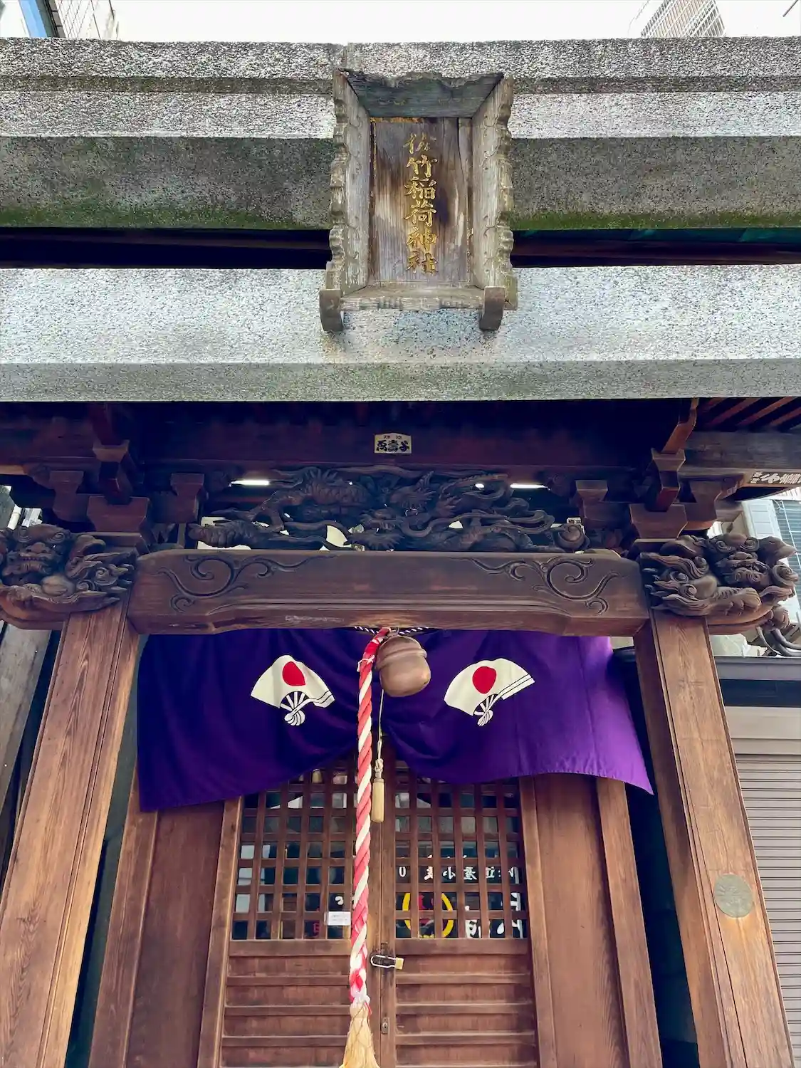 JR神田駅に程近い商店街の中にひっそりと建つ佐竹稲荷神社を参拝。