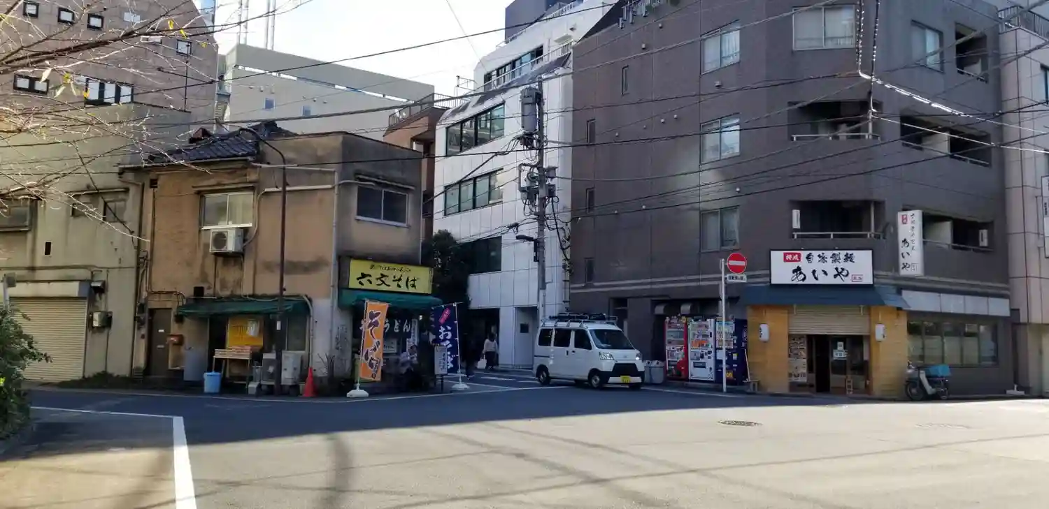 連雀通りのシンボルのような六文そば