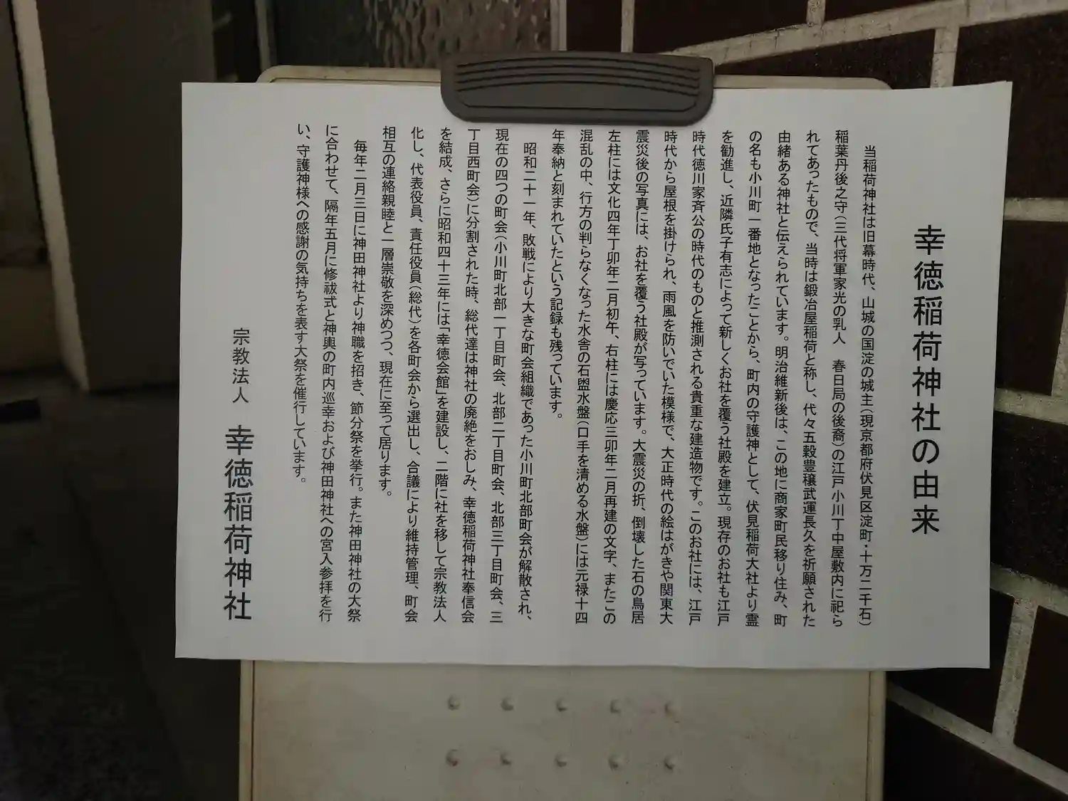 幸徳稲荷神社は、千代田区神田小川町にある稲荷神社です。幸徳稲荷神社は、江戸時代山城国城主稲葉丹後之…