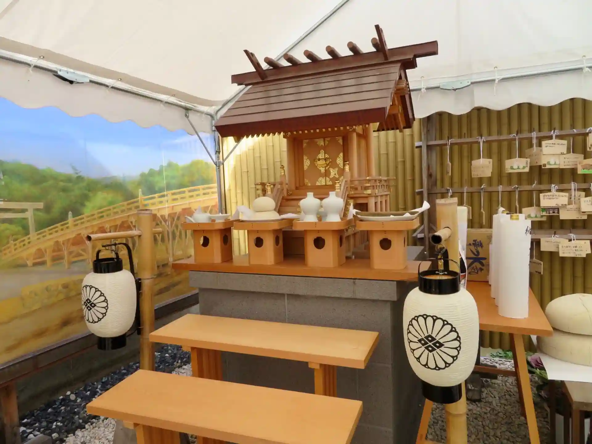 現在は仮殿で新社殿は9月完成予定とのことです。
