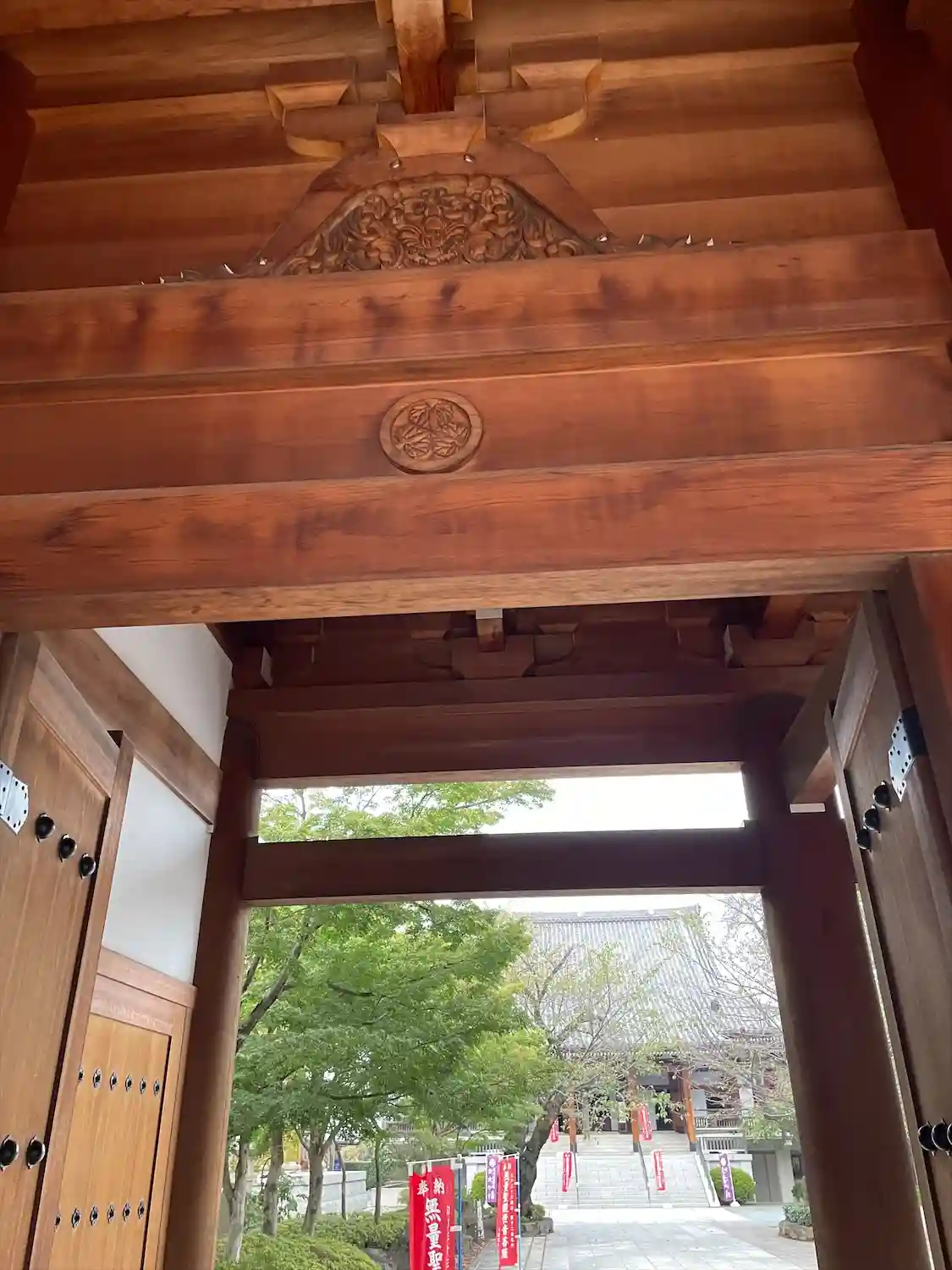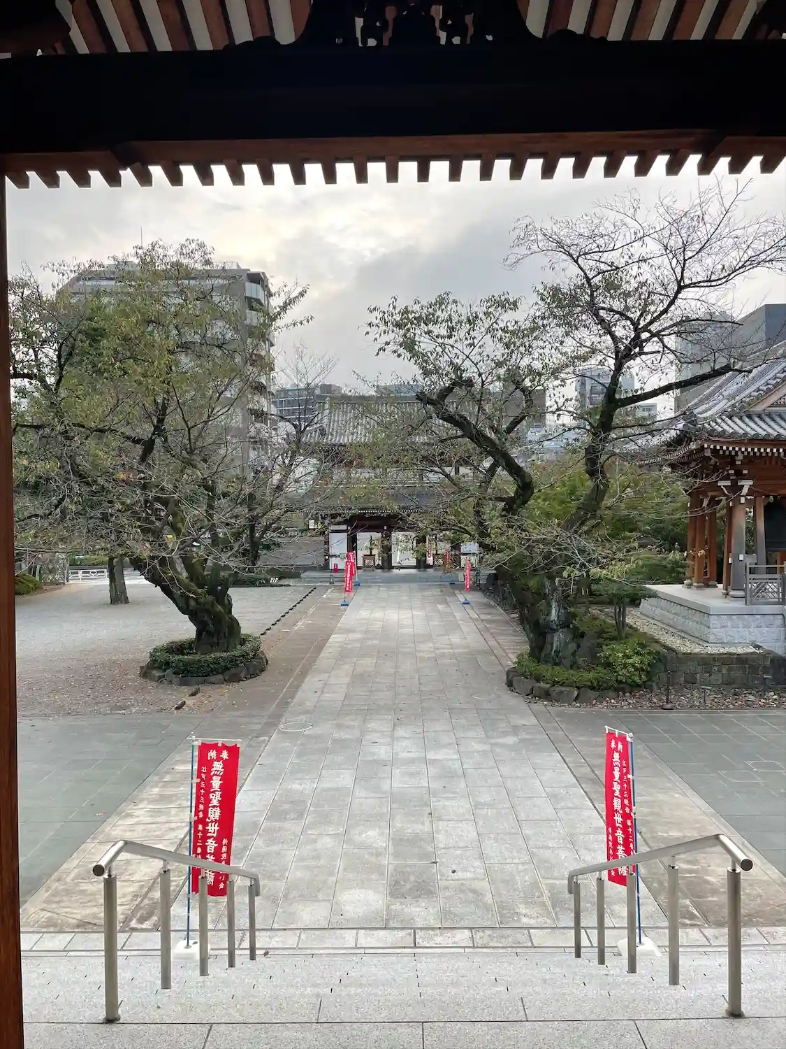 本堂から山門を望む。