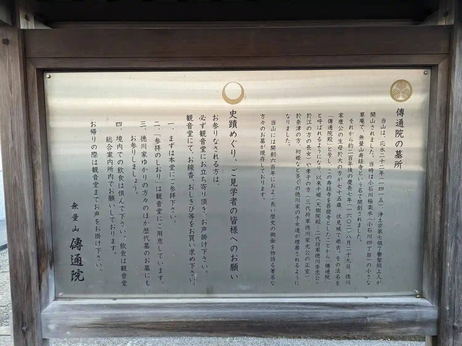 伝通院は家康公の生母、於大の方の法名『伝通院殿』からき…