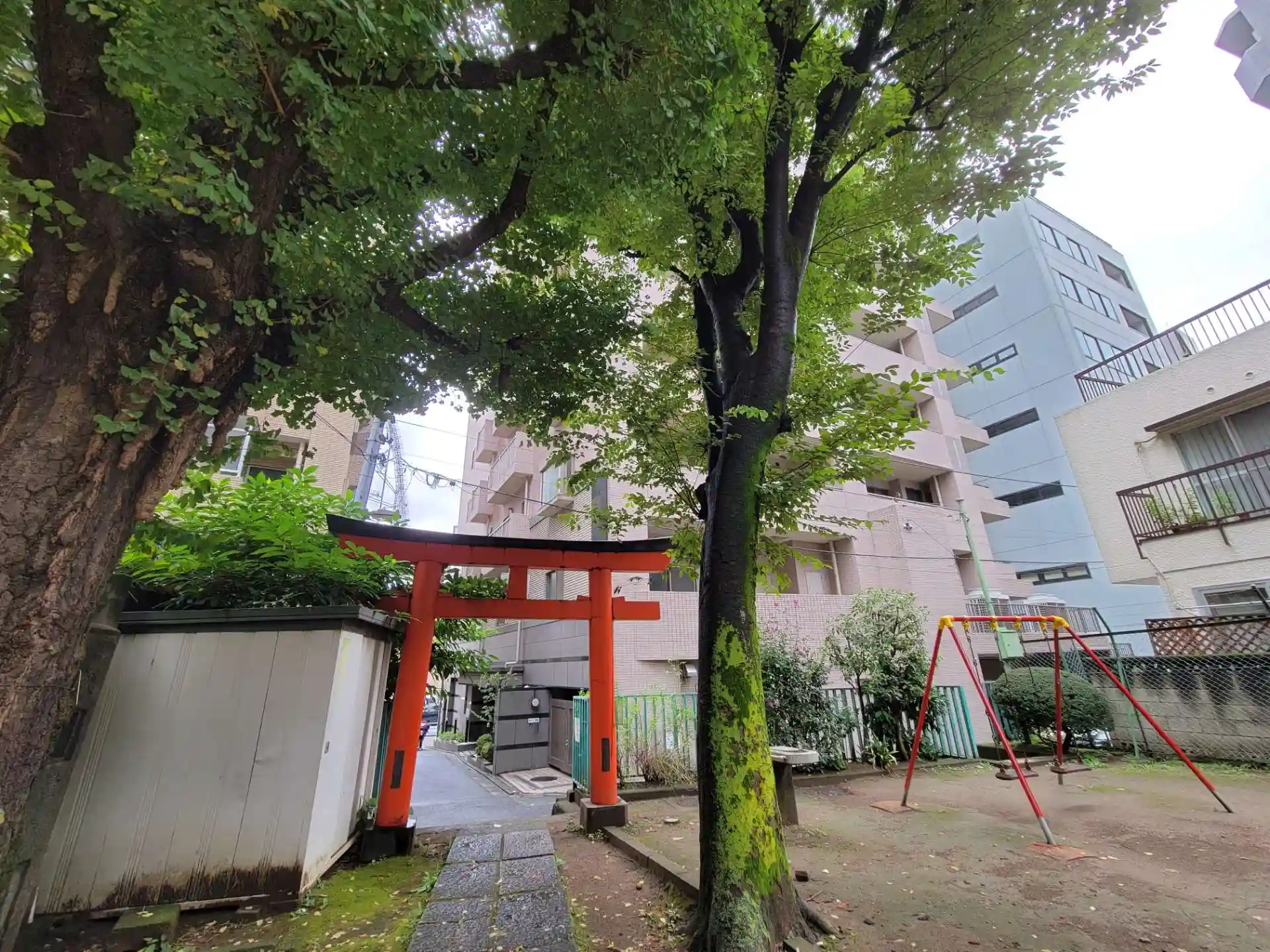 小さな公園の中にある小さな神社。