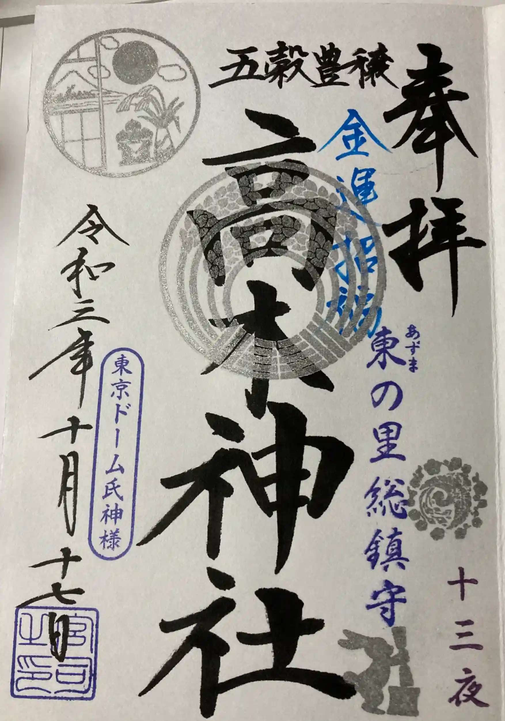 13夜の直書き御朱印です。