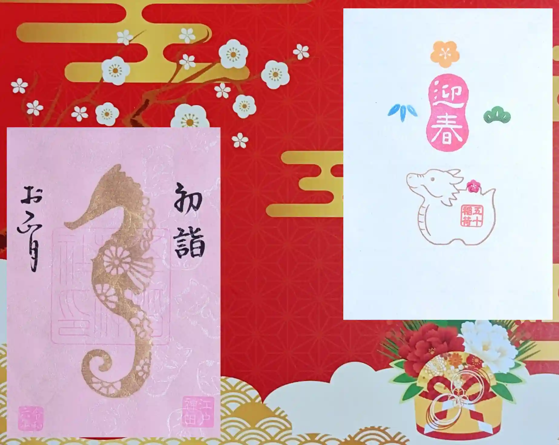 左側 令和6年1月の御朱印 『龍と一緒』