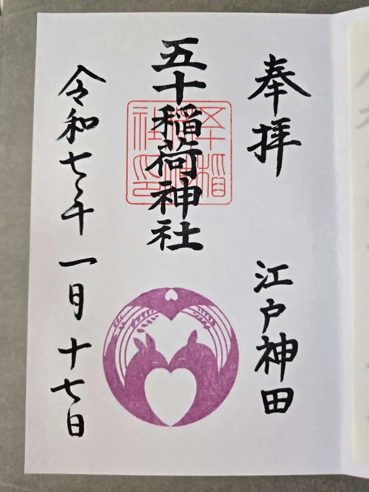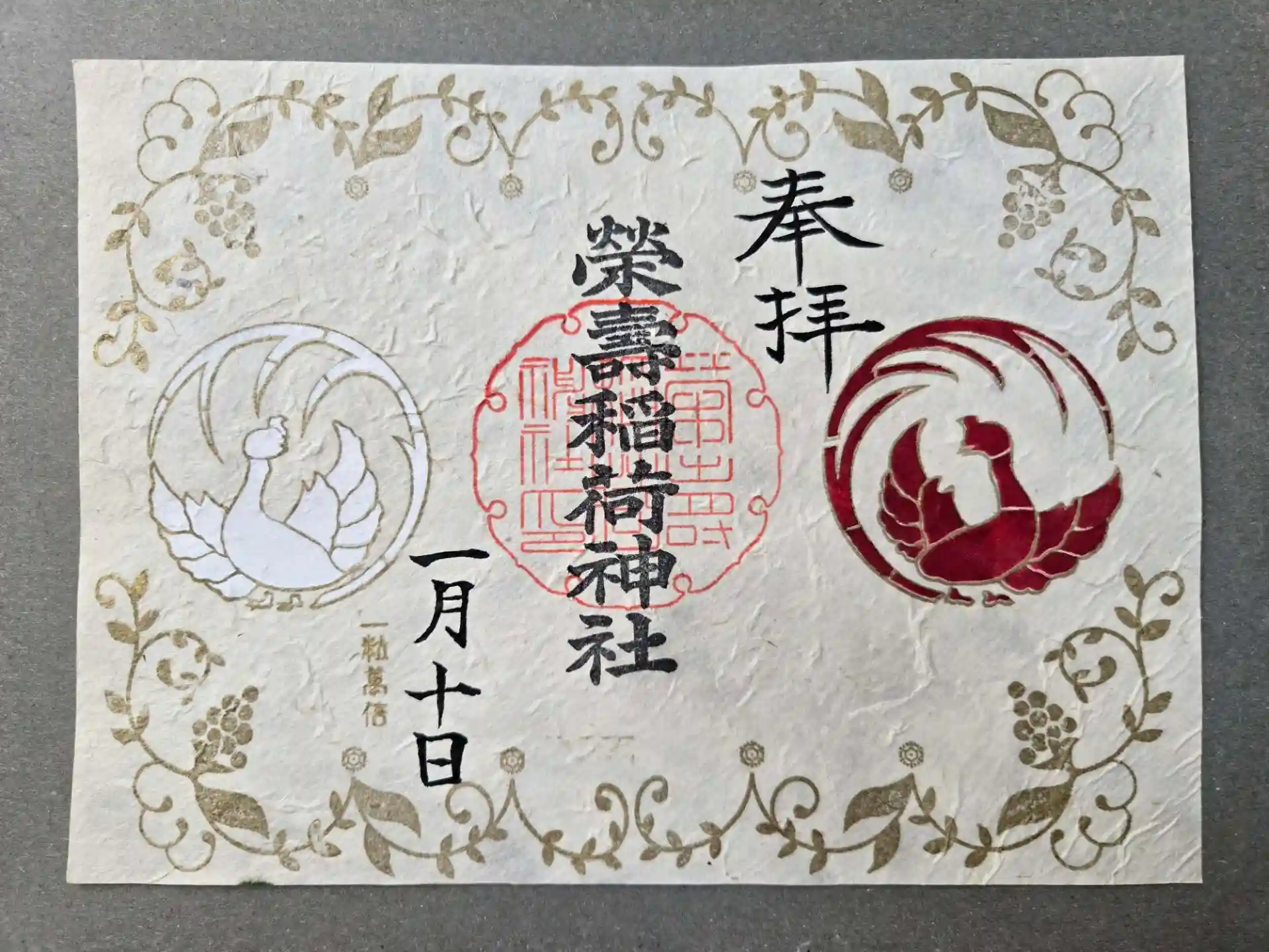 栄寿稲荷神社の「紅白鳳凰」御朱印は別日に拝受。