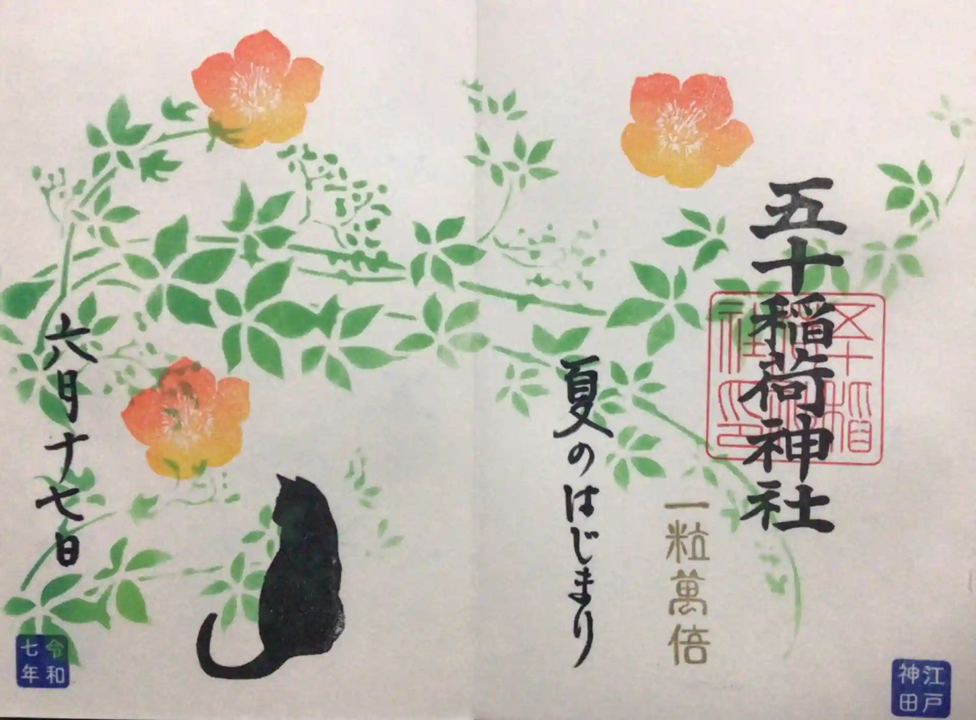 五十稲荷の日の御朱印、限定頒布のものも含め、三種が頒布されていましたが、現在頂けるのはこちらのみ。6月末まで頒布中です。